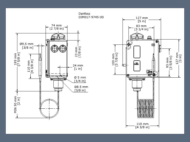 017-521166 Danfoss: Temperature range [°C]: 120 - 215, Reset function: Manual Max, Contact function: SPDT, Sensor type: Remote bulb, Capillary tube length [mm]: 2000, Enclosure rating IP: IP54