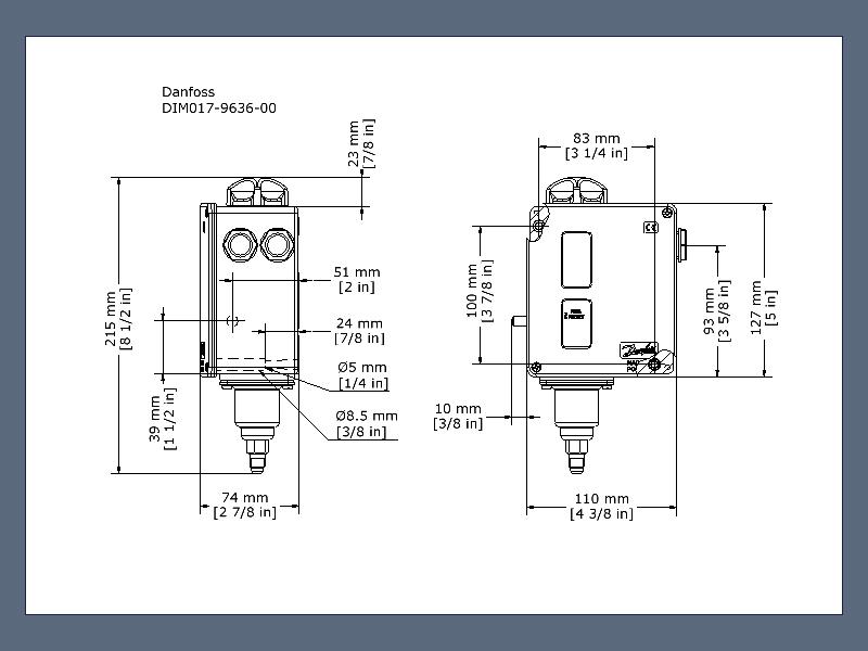 017-524666 Danfoss: Regulation range [bar] Pe: -0.80 - 5.00, Differential [bar]: 0.50, Contact function: SPDT, Reset function: Manual Min, Pressure connection type: Flare, Pressure connection size: 1/4, Pressure Male/Female: Male, Enclosure rating IP: IP54, Max. Working Pressure [bar]: 22.0