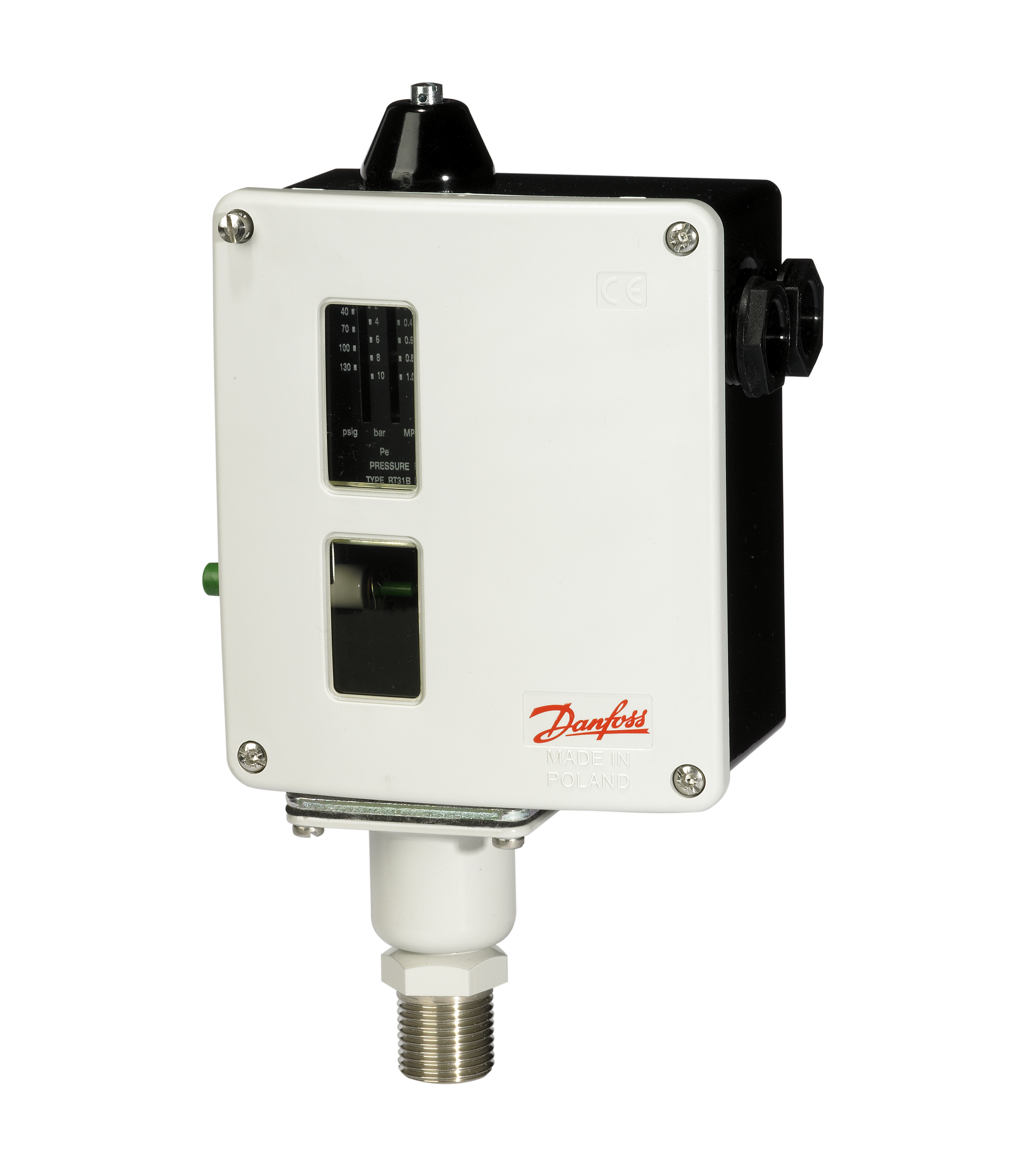 017-526766 Danfoss: Regulation range [bar] Pe: 2.00 - 10.00, Differential [bar]: 0.30 - 1.00, Contact function: SPDT, Reset function: Auto, Pressure connection type: G, Pressure connection size: 1/2, Pressure Male/Female: Male, Enclosure rating IP: IP66, Max. Working Pressure [bar]: 22.0
