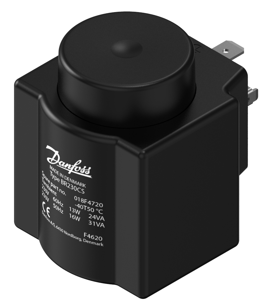 018F4720 Danfoss: Electrical connection: DIN Spade, Supply voltage [V] AC: 230, Frequency [Hz]: 50/60 Hz, Enclosure rating IP: IP00