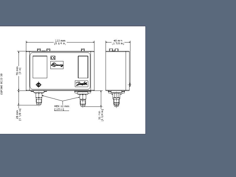 060-5251 Danfoss: Regulation left side [bar]Pe: -0.20 - 7.50, Regulation right side [bar]Pe: 8.0 - 42.0, Differential left side [bar]: 0.70 - 4.00, Differential right side [bar]: 4.0, Contact function: SPDT+SPST(NO), Reset function, left side: Auto, Reset function, right side: Auto