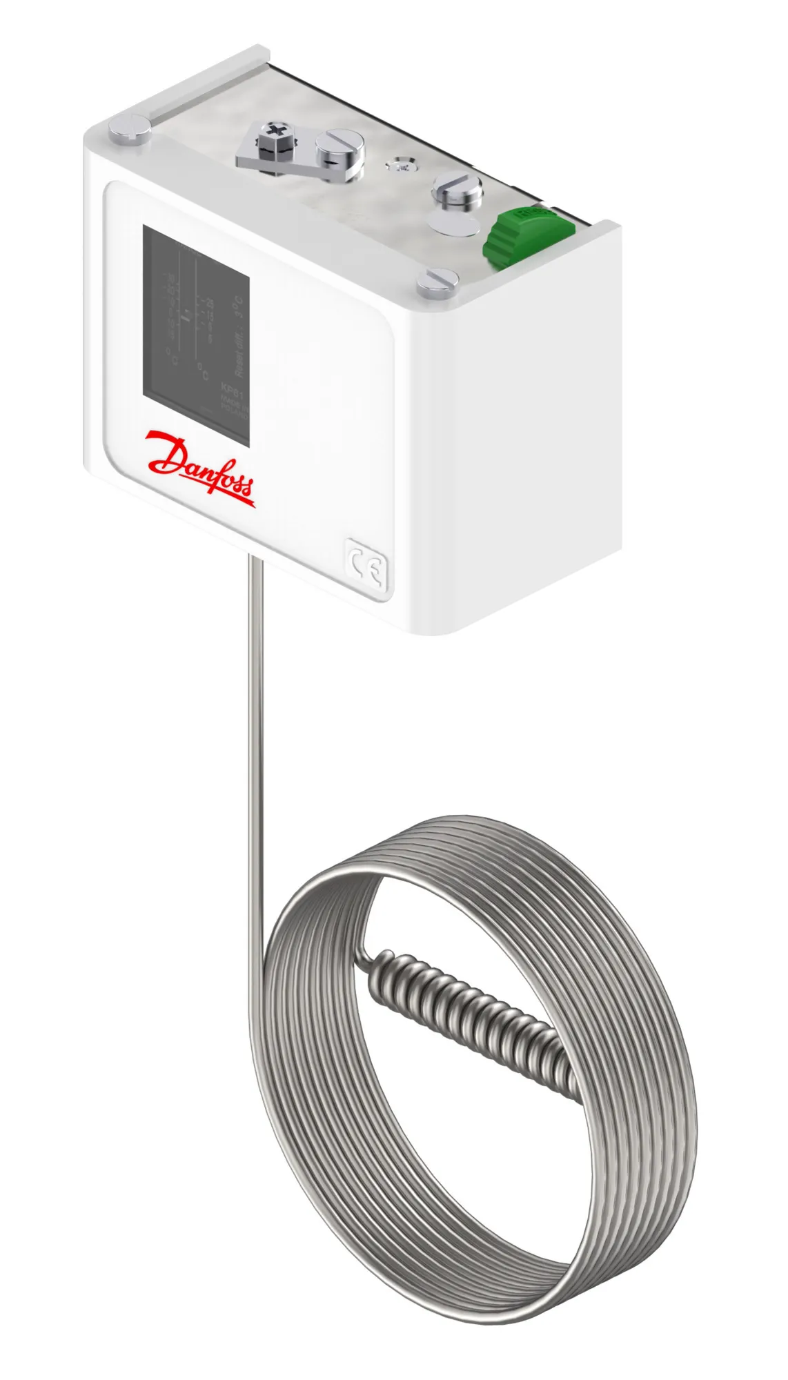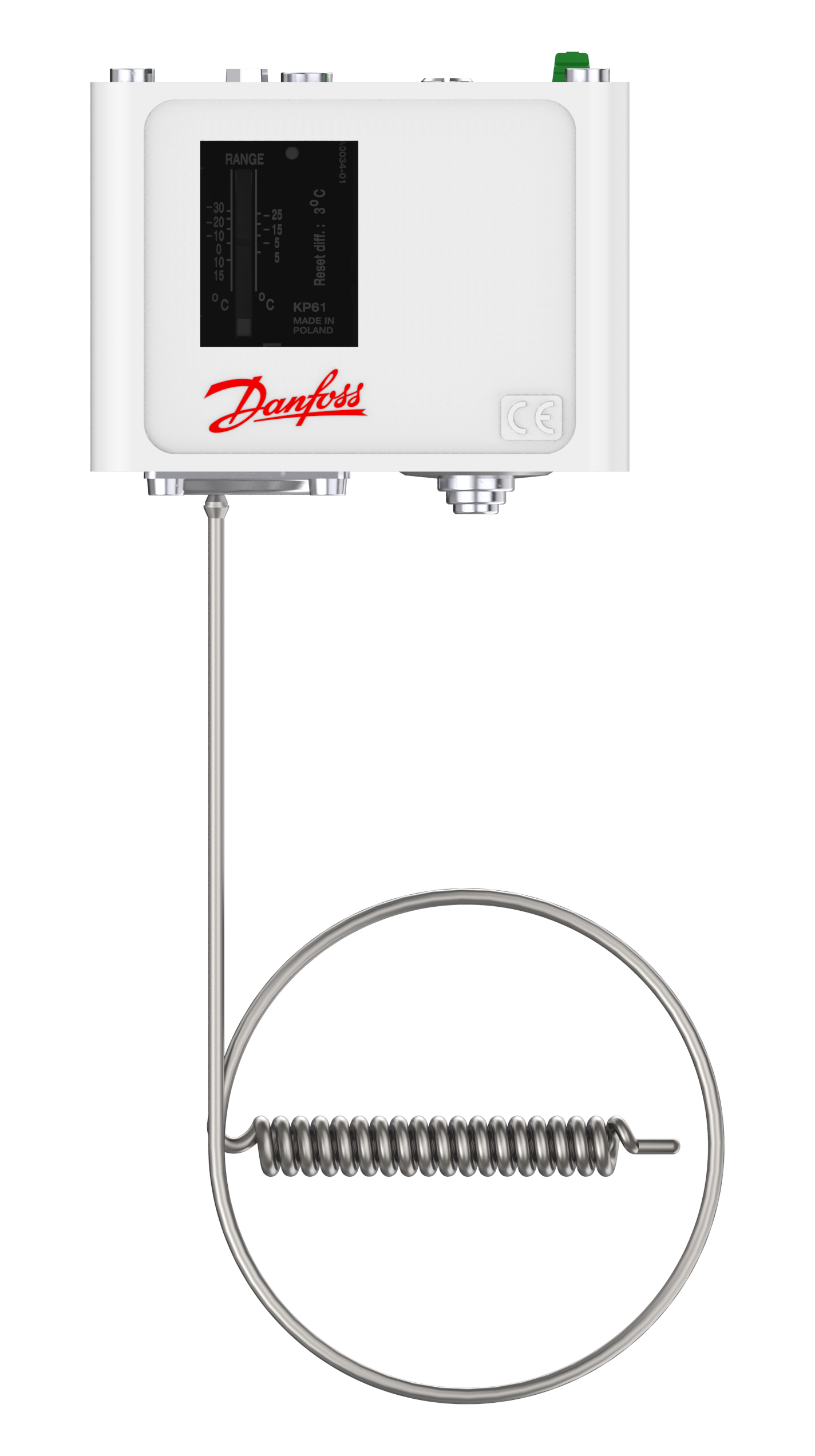 060L110566 Danfoss: Temperature range [°C]: -30 - 15, Reset function: Manual Min, Contact function: SPDT, Sensor type: Remote air coil, Capillary tube length [mm]: 2000, Enclosure rating IP: IP30