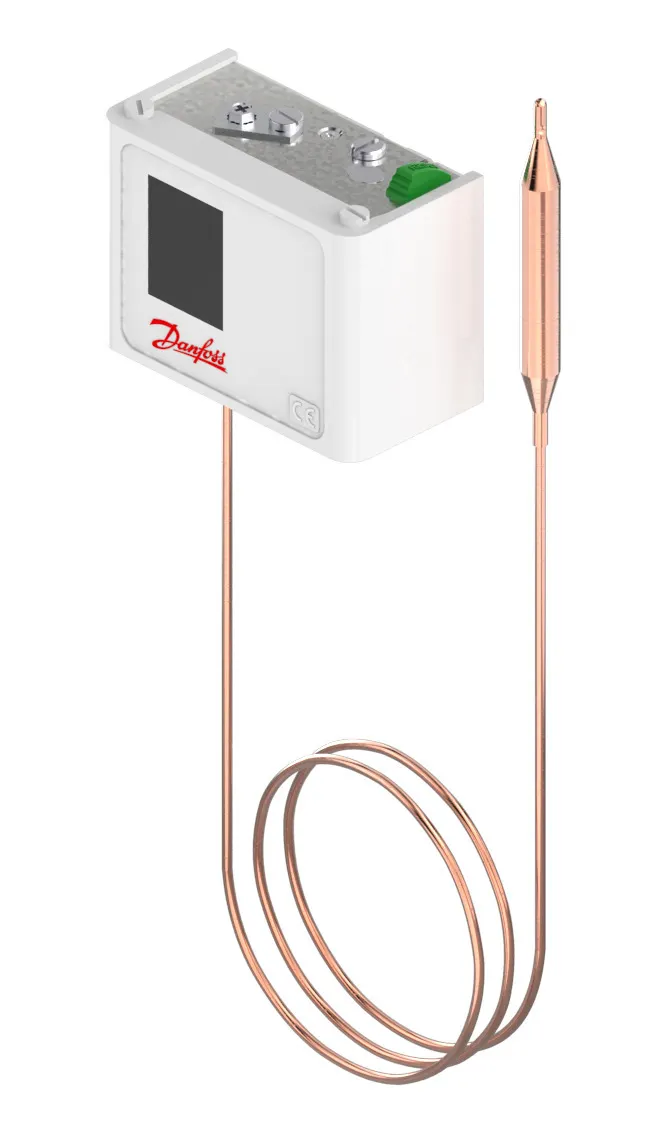 060L115566 Danfoss: Temperature range [°C]: 80 - 150, Reset function: Manual Max, Contact function: SPDT, Sensor type: Remote bulb, Capillary tube length [mm]: 2000, Enclosure rating IP: IP30