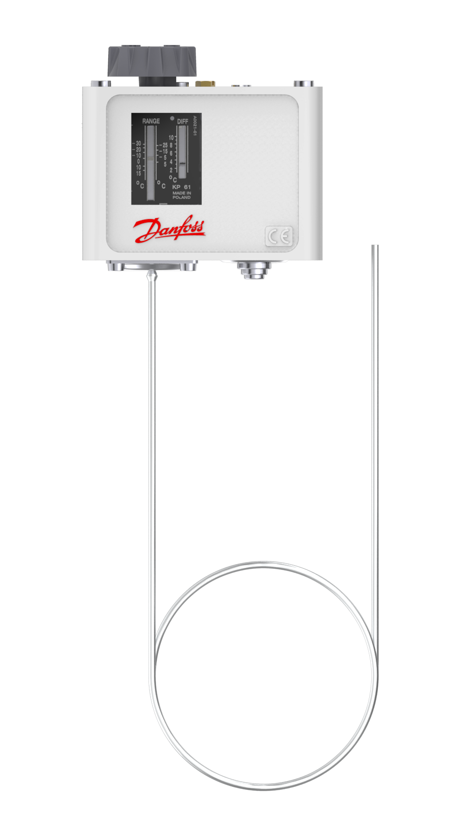 060L124866 Danfoss: Temperature range [°C]: -30 - 15, Reset function: Auto, Contact function: SPDT, Sensor type: Capillary tube sensor, Capillary tube length [mm]: 4000, Enclosure rating IP: IP30