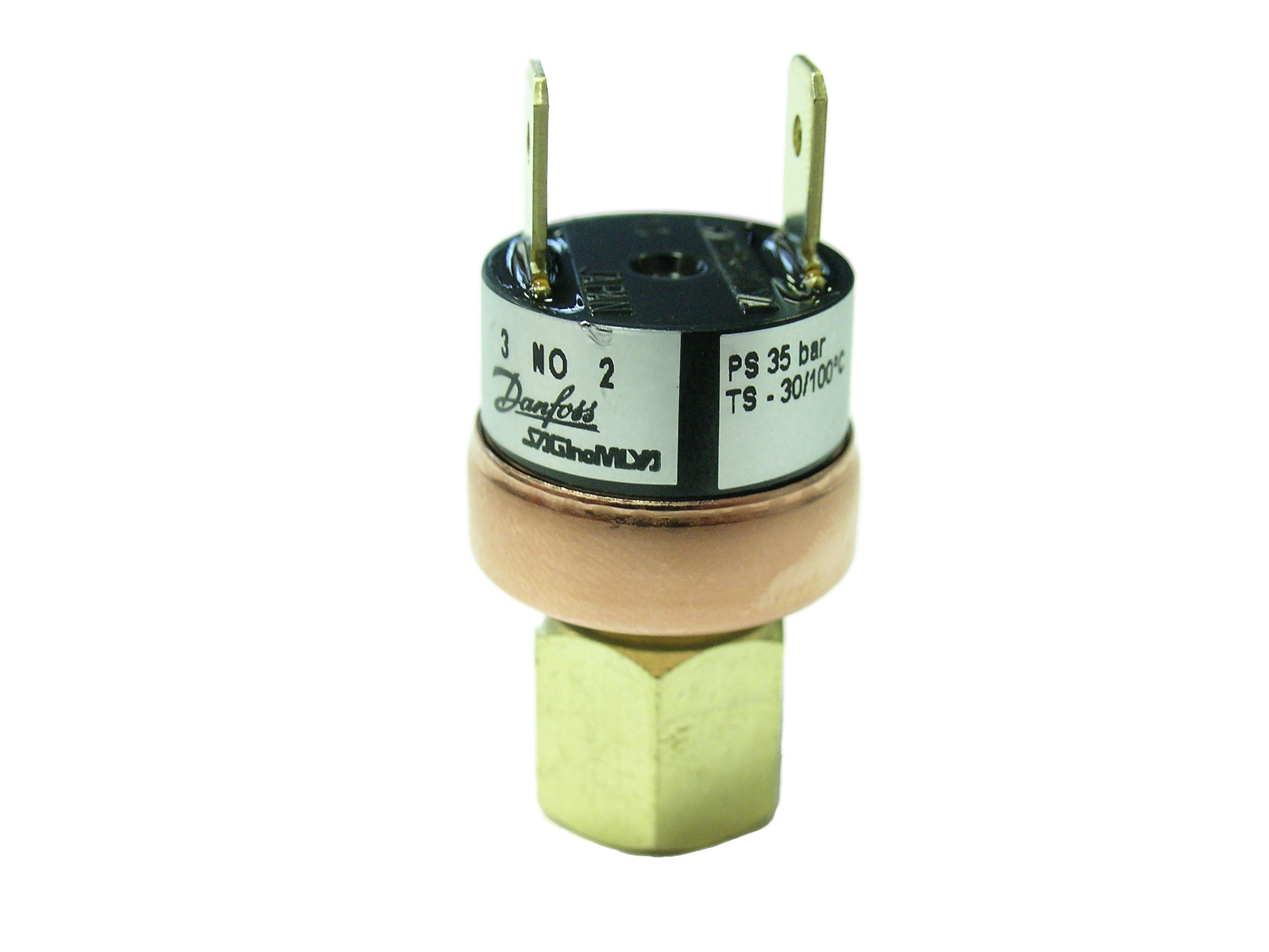 061F7400 Danfoss: Higher activ. pressure [bar]: 1.50, Lower activ. pressure [bar]: 0.50, Reset function: Auto, Contact function: SPST(NO), Pressure connection type: Flare, Pressure connection size: 1/4 in, Electrical connection: Spade connectors, Enclosure rating IP: IP40