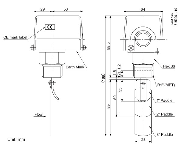 061H4000 Danfoss: Pressure connection type: R, Pressure connection size: 1 in, Media: Glycol; Fresh water; Neutral brine, Connection type: Thread, Contact function: SPDT