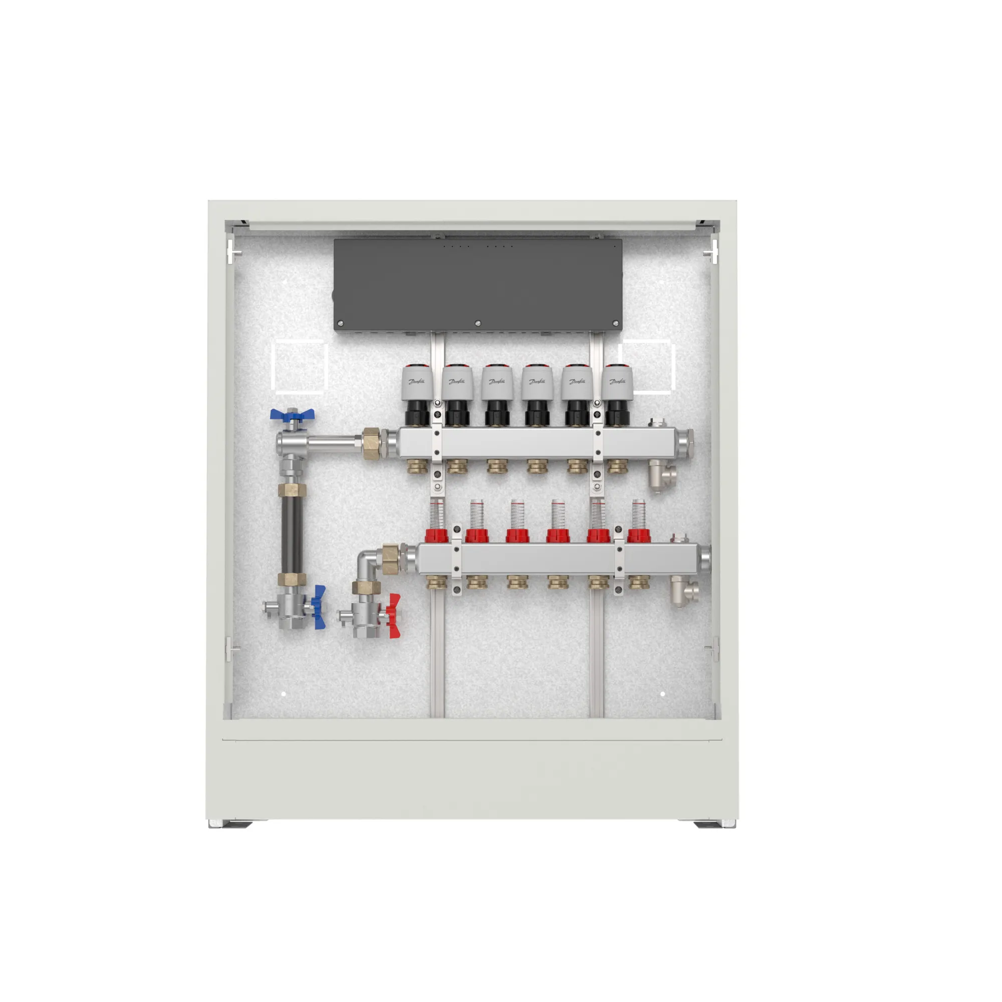 Stainless steel manifold, 6 loops, steel cabinet, ICON Wiring center, right version
