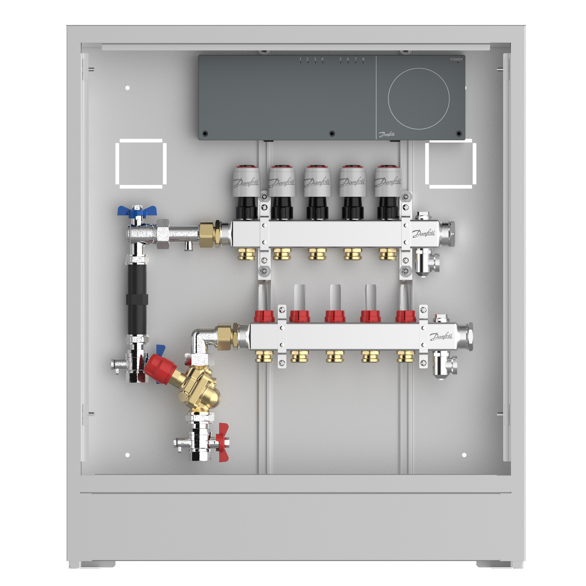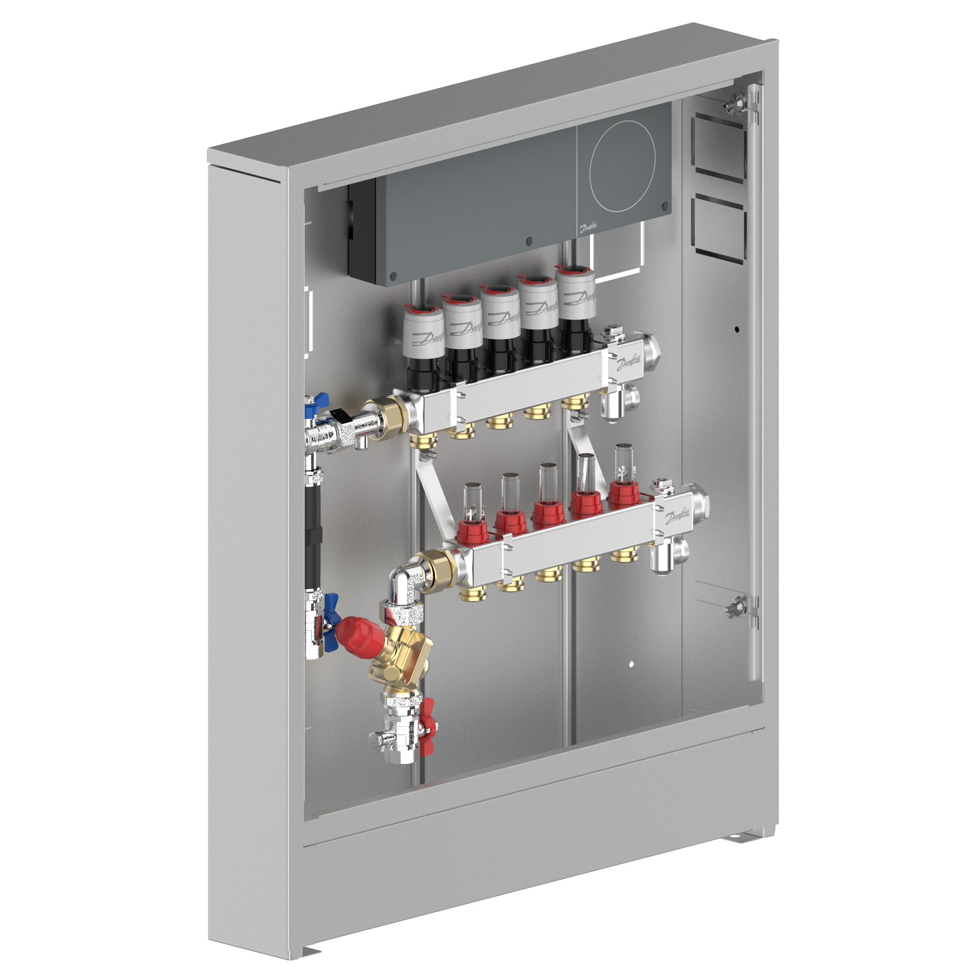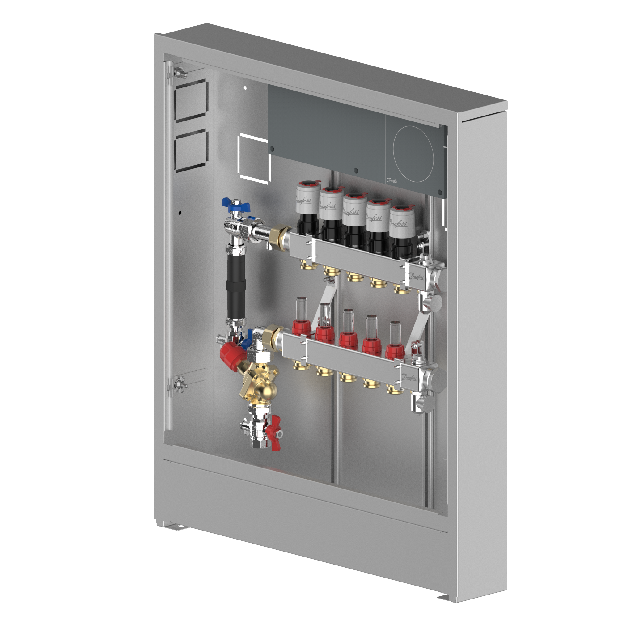088X3205 Danfoss: Stainless steel manifold, 5 loops, AB-PM, steel cabinet, ICON Wiring center, left version