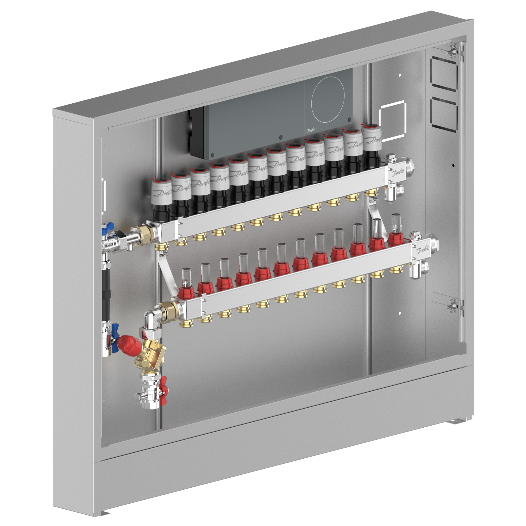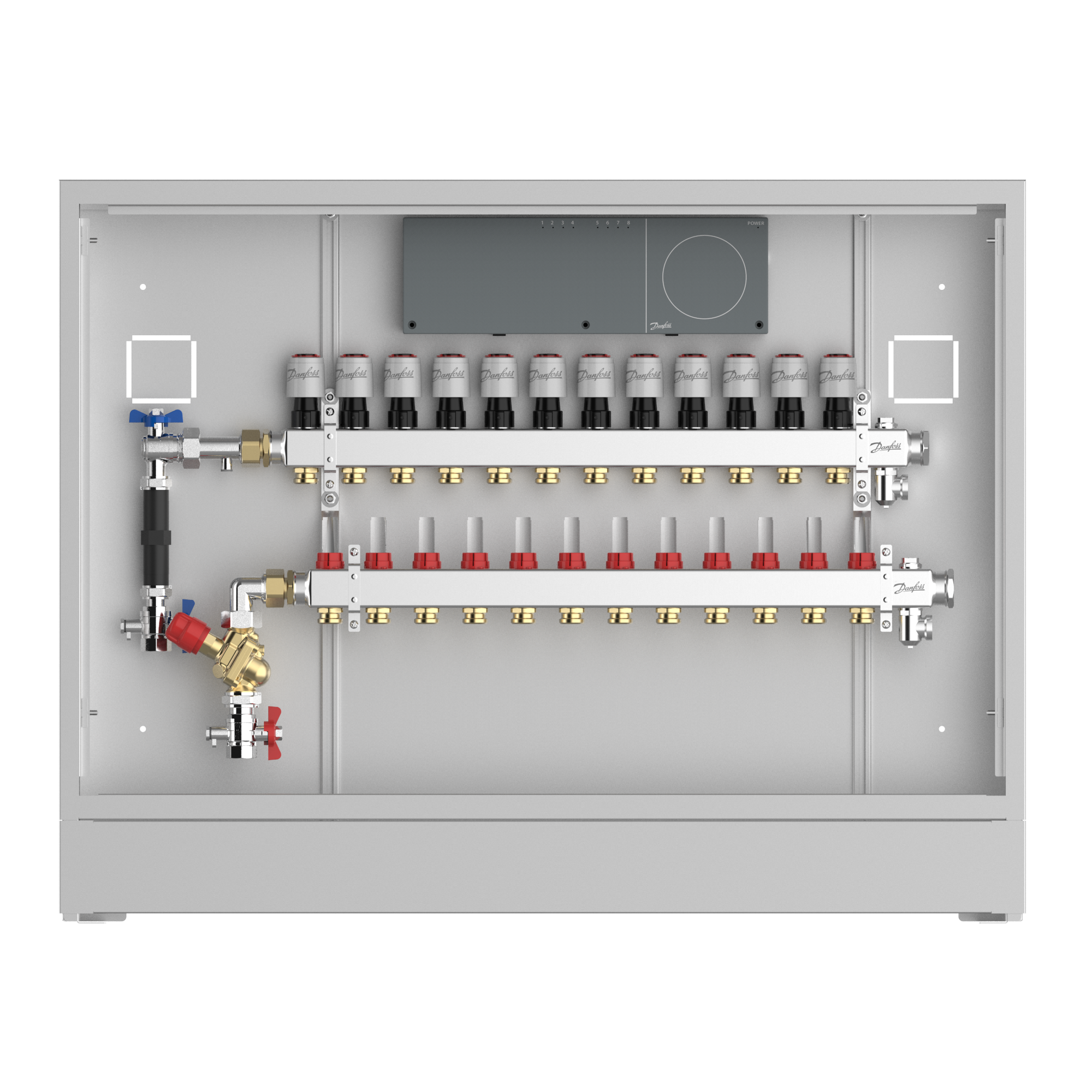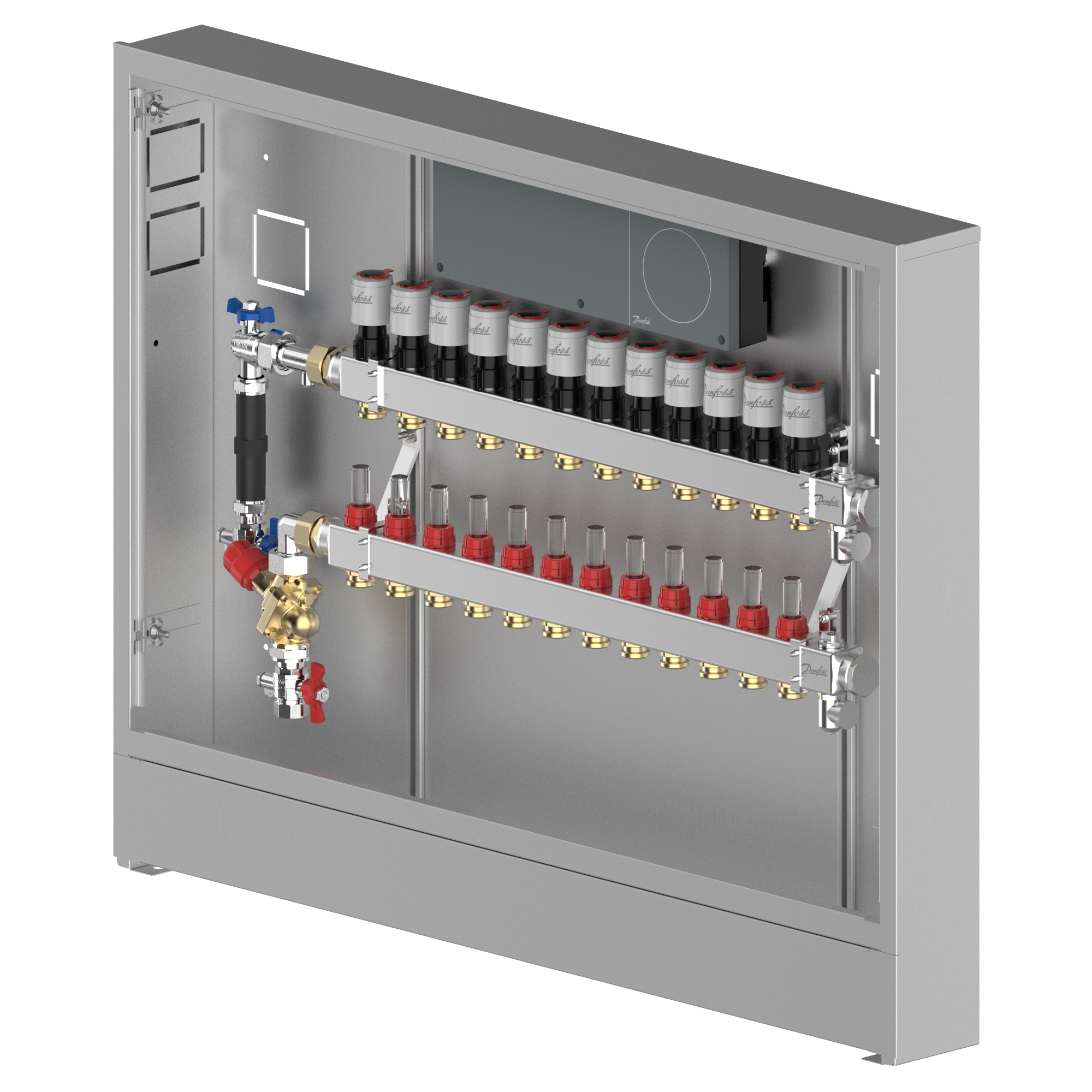 088X3212 Danfoss: Stainless steel manifold, 12 loops, AB-PM, steel cabinet, ICON Wiring center, left version