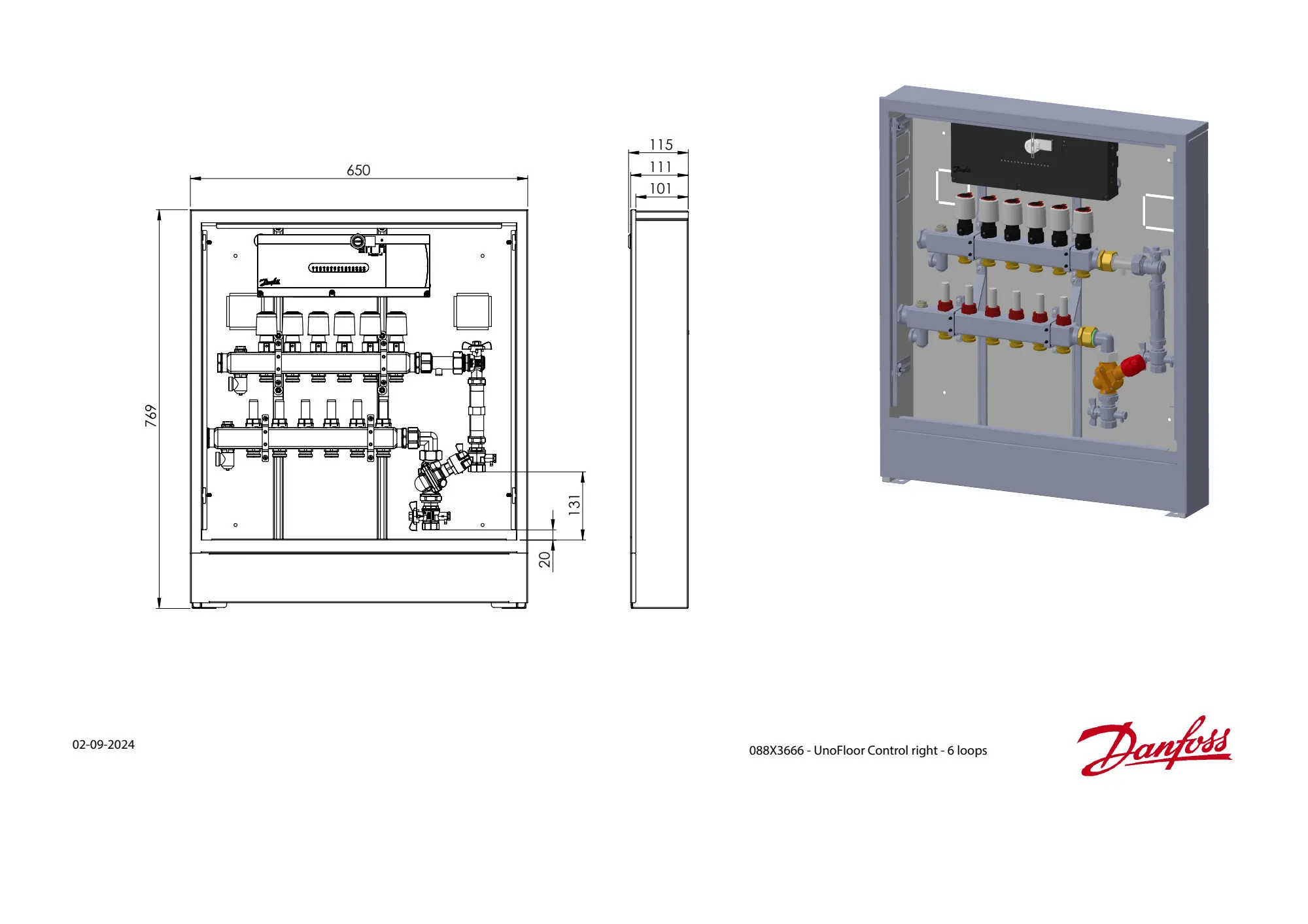 088X3666 Danfoss: Stainless steel manifold, 6 loops, AB-PM, steel cabinet, ICON 2 Advanced Master Controller, Right version