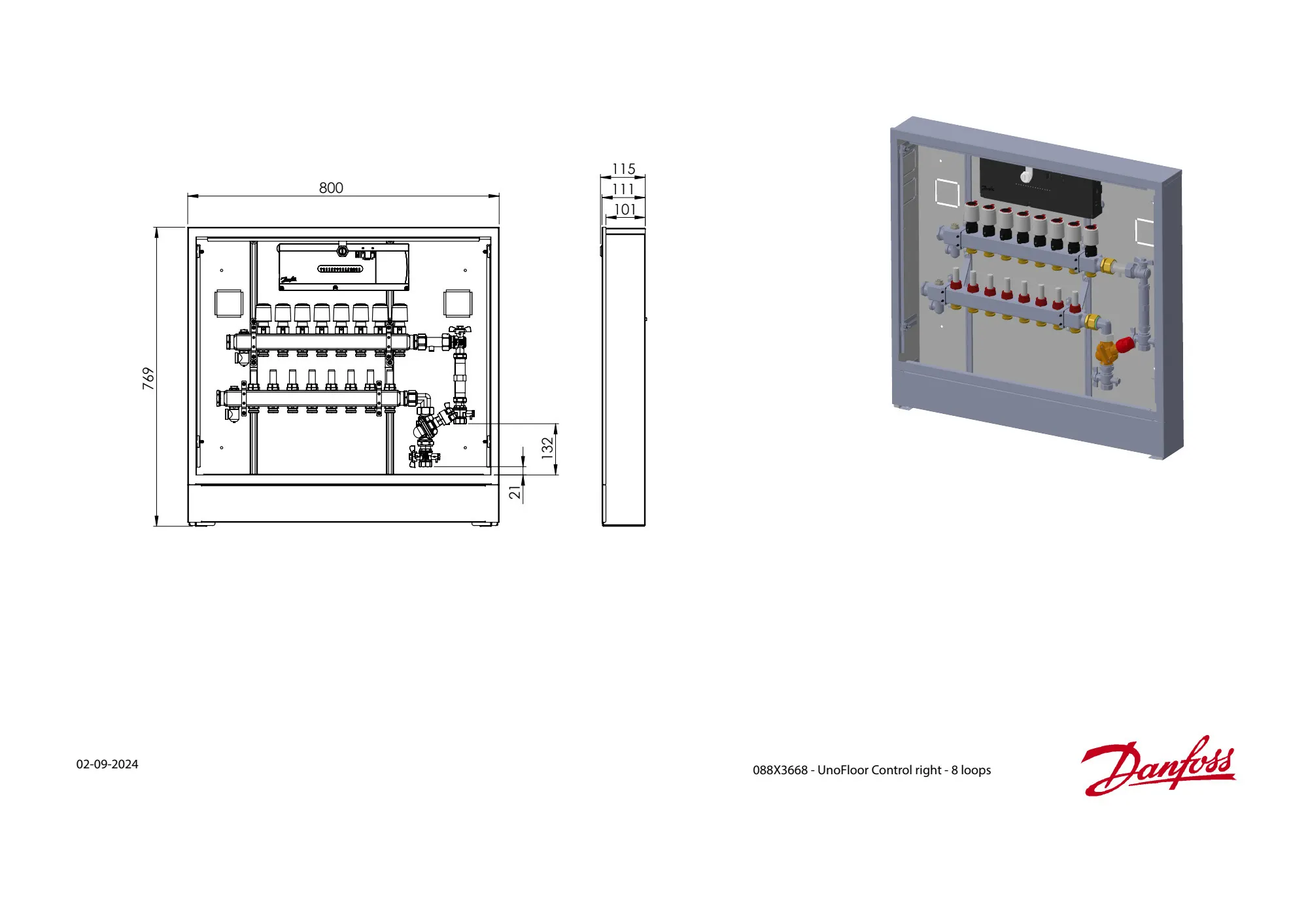 088X3668 Danfoss: Stainless steel manifold, 8 loops, AB-PM, steel cabinet, ICON 2 Advanced Master Controller, Right version