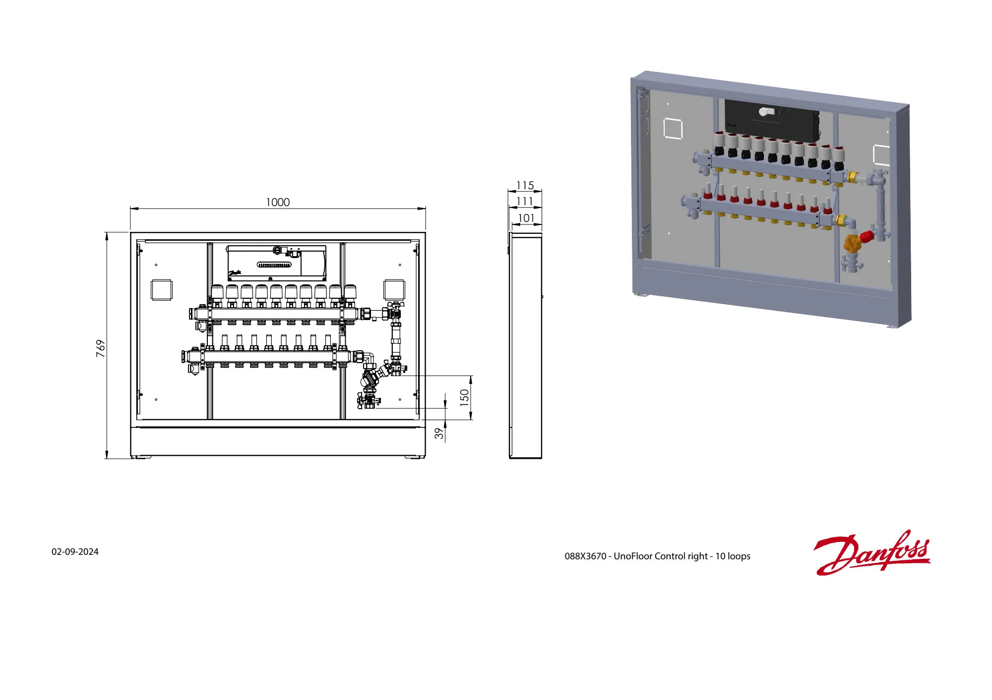 088X3670 Danfoss: Stainless steel manifold, 10 loops, AB-PM, steel cabinet, ICON 2 Advanced Master Controller, Right version