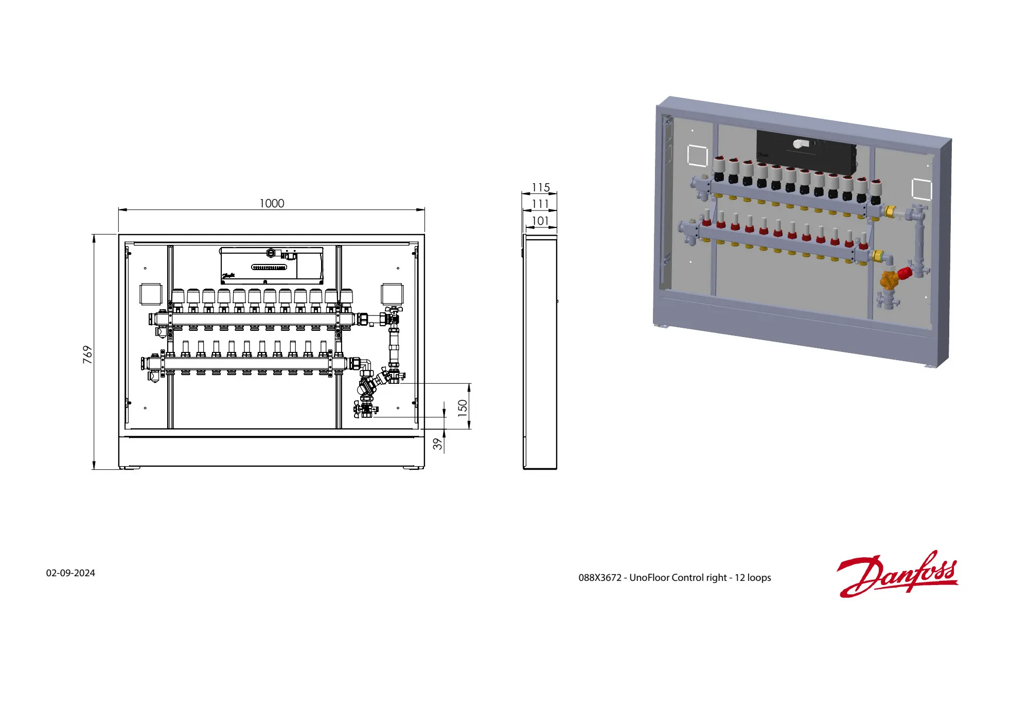088X3672 Danfoss: Stainless steel manifold, 12 loops, AB-PM, steel cabinet, ICON 2 Advanced Master Controller, Right version