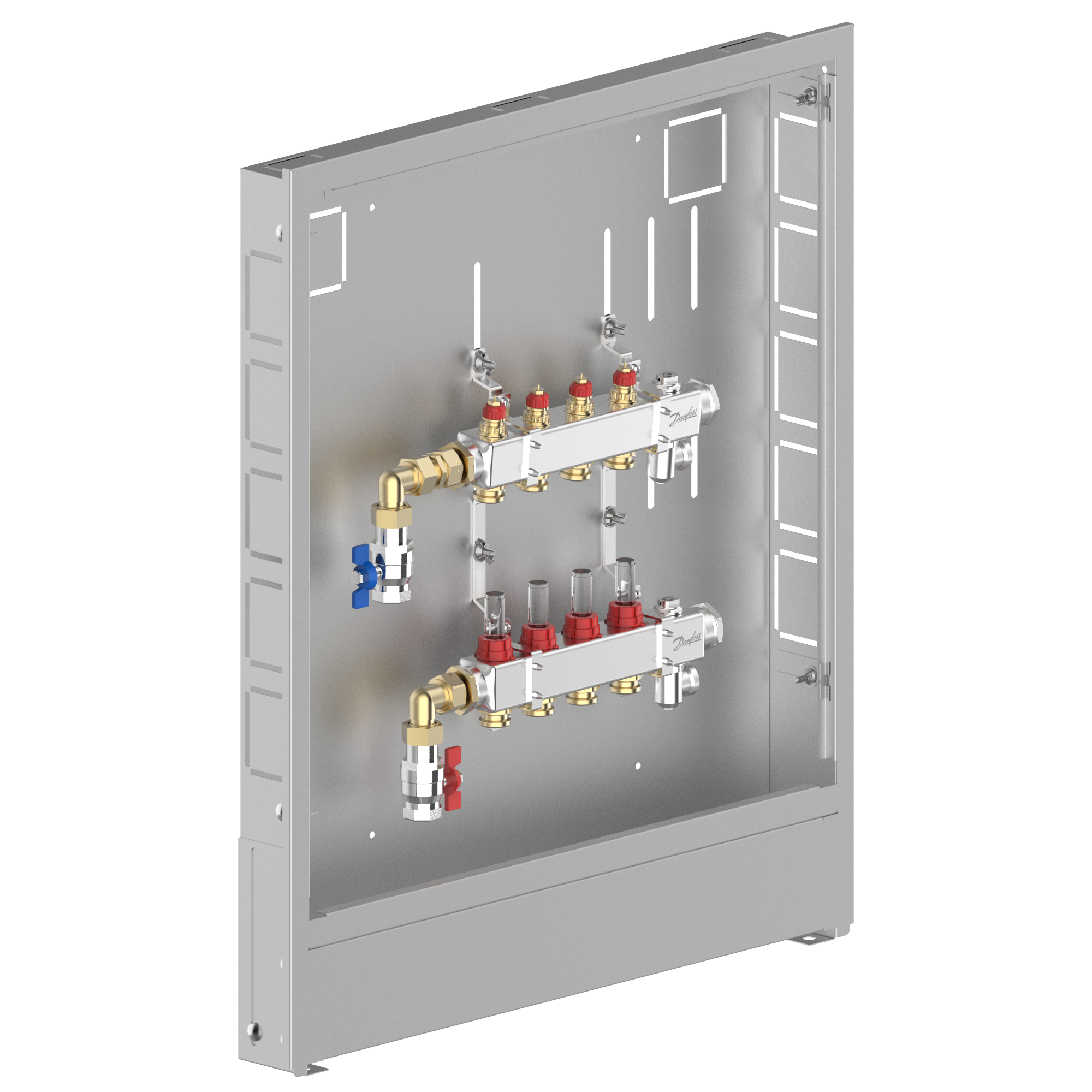 088X3704 Danfoss: Stainless steel manifold, 4 loops, steel cabinet, left version