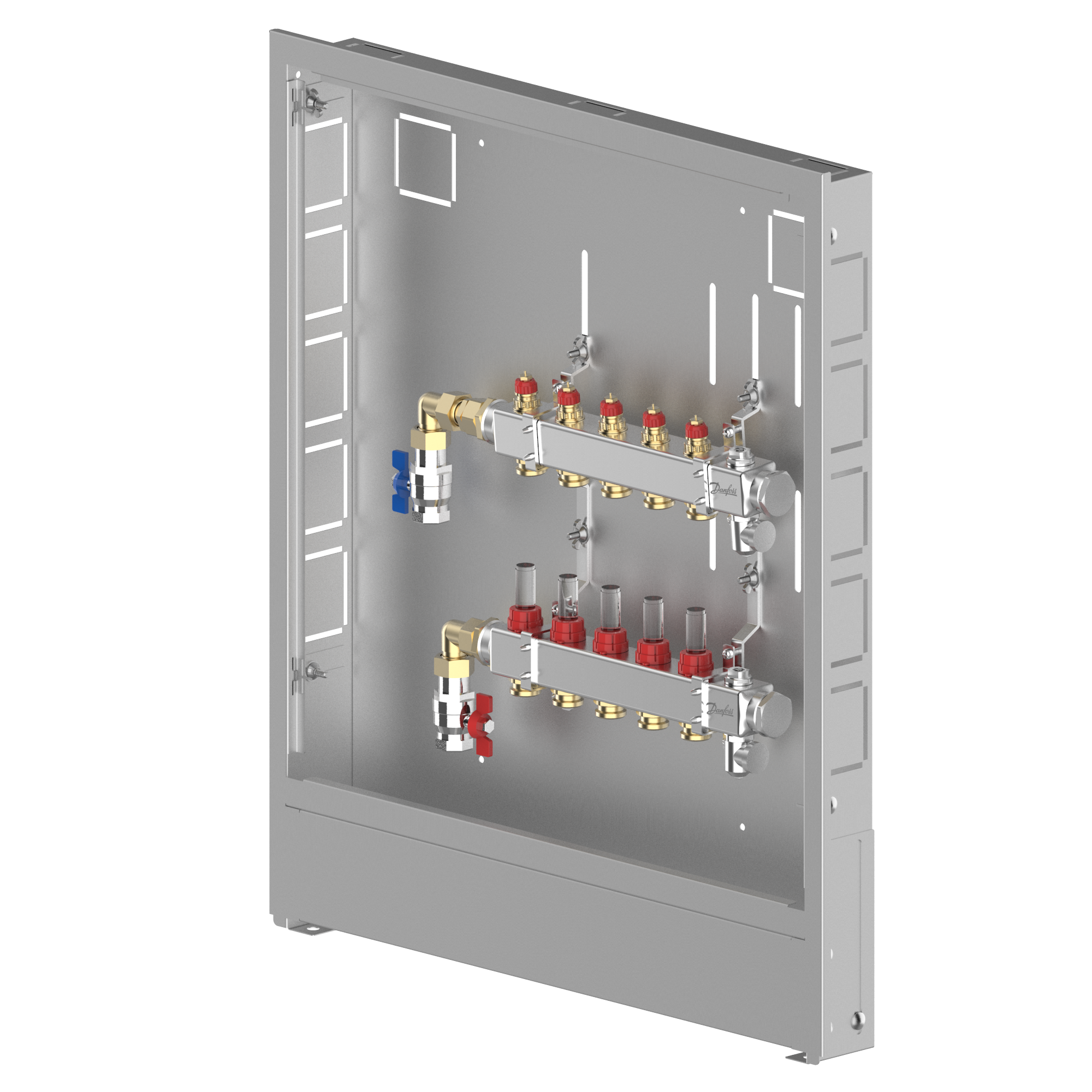 Stainless steel manifold, 5 loops, steel cabinet, left version