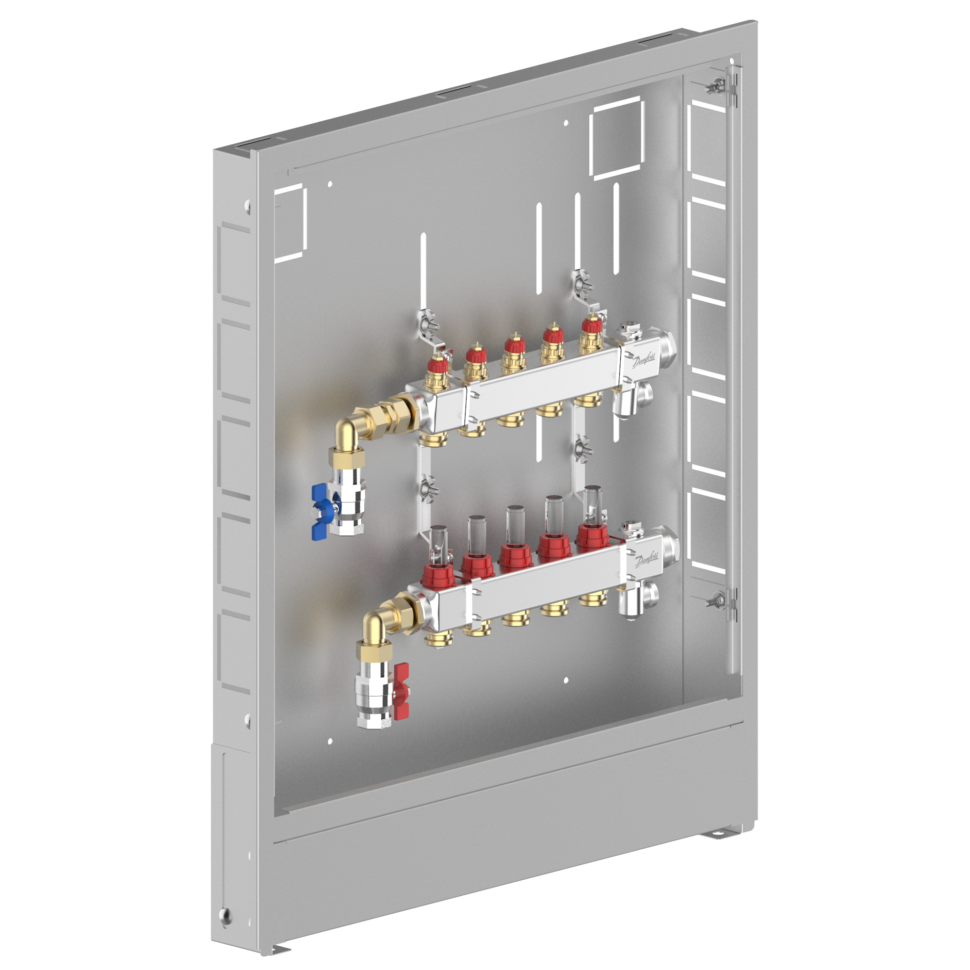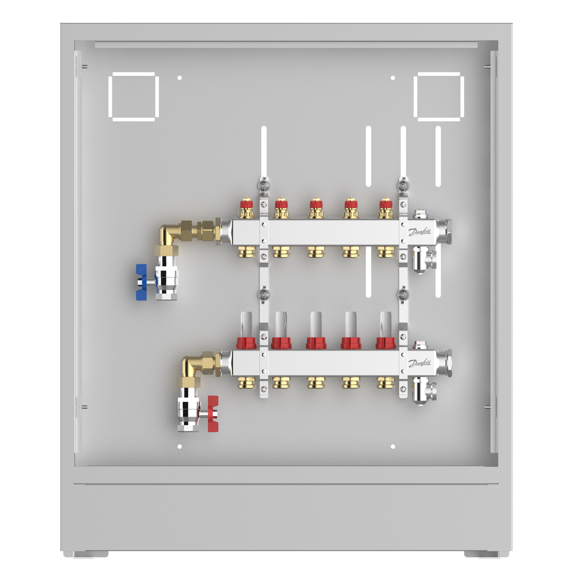 088X3705 Danfoss: Stainless steel manifold, 5 loops, steel cabinet, left version