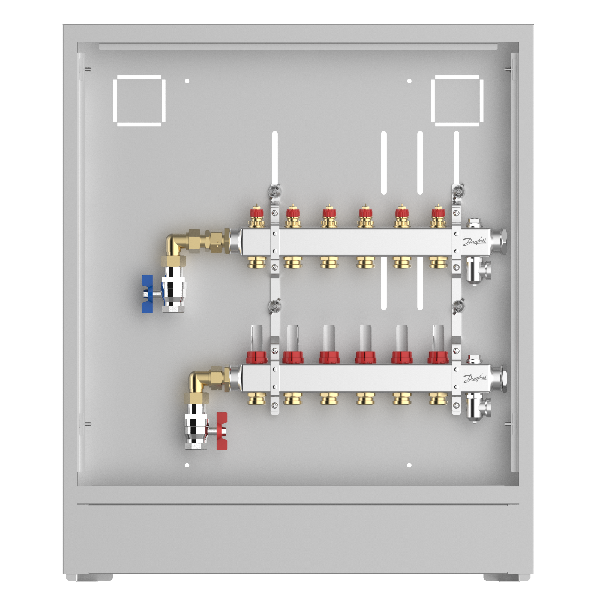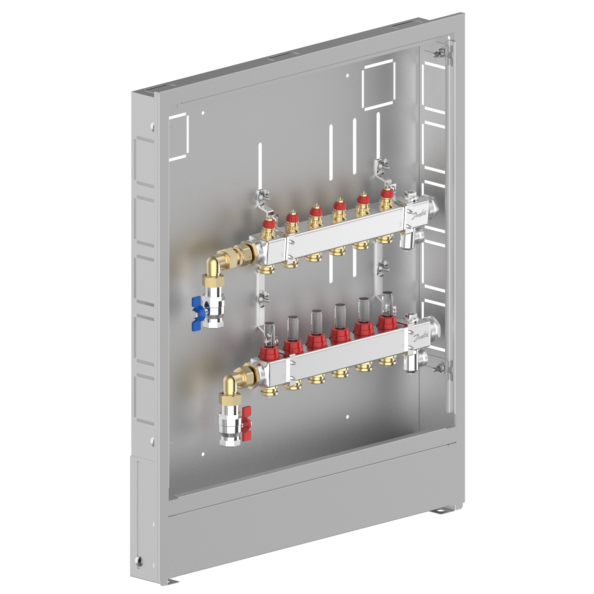 Stainless steel manifold, 6 loops, steel cabinet, left version
