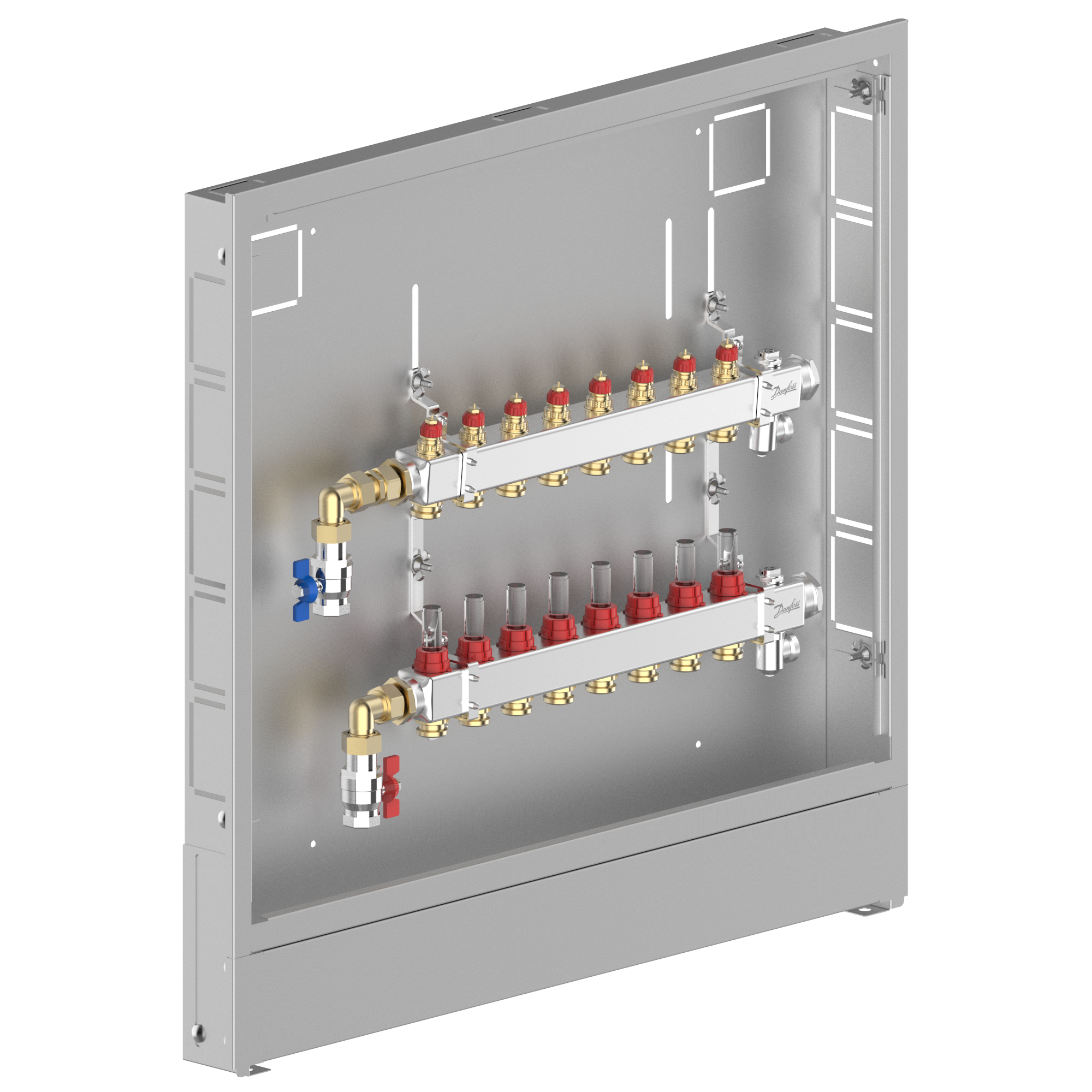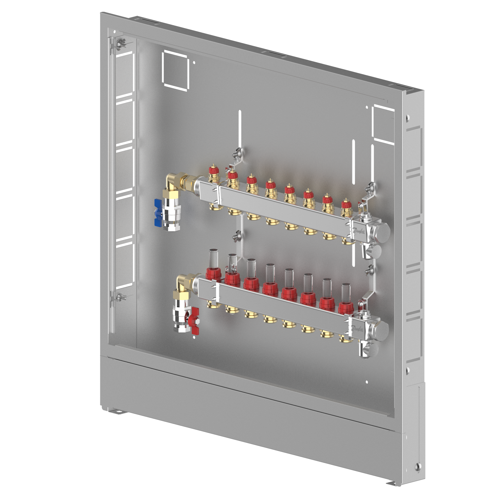 088X3708 Danfoss: Stainless steel manifold, 8 loops, steel cabinet, left version
