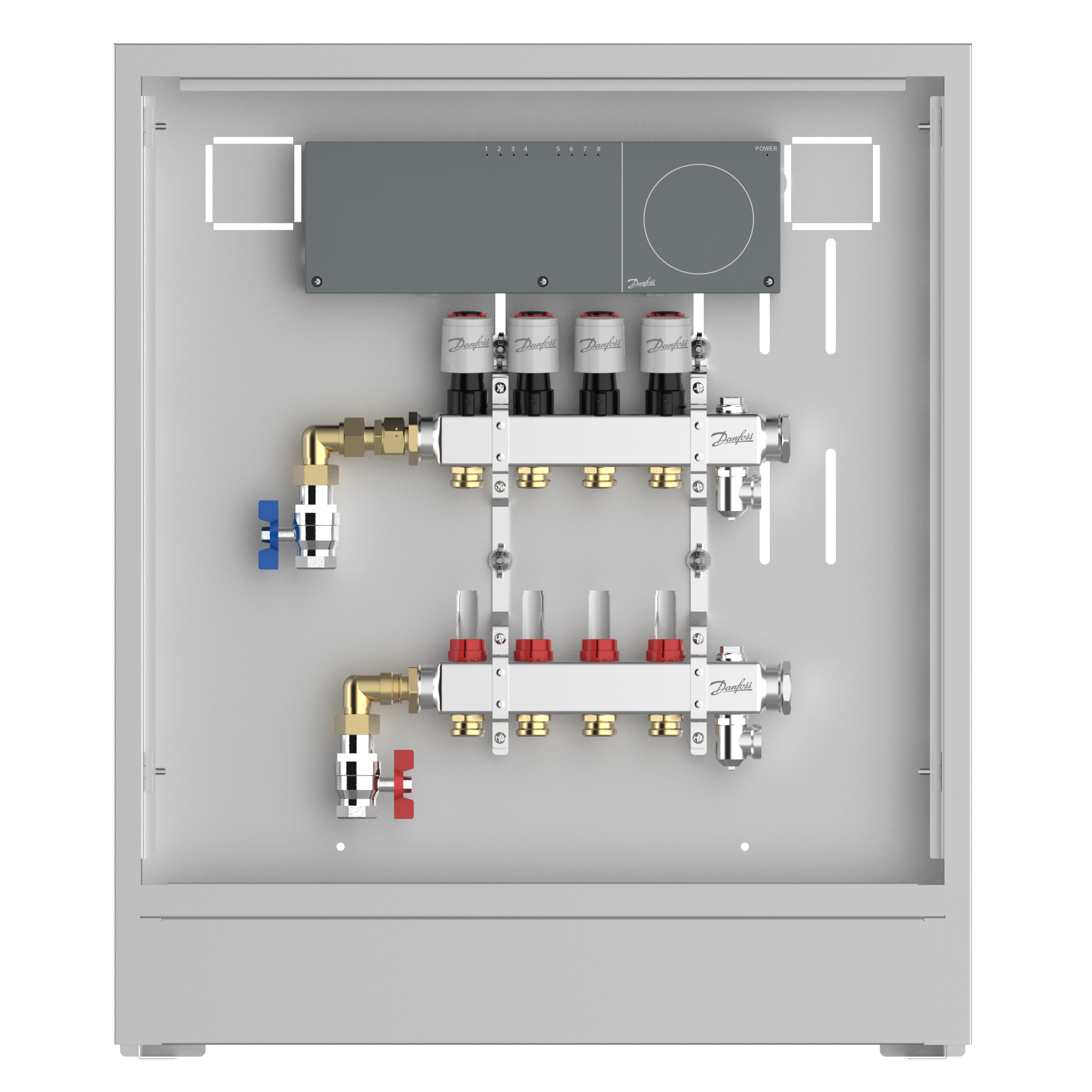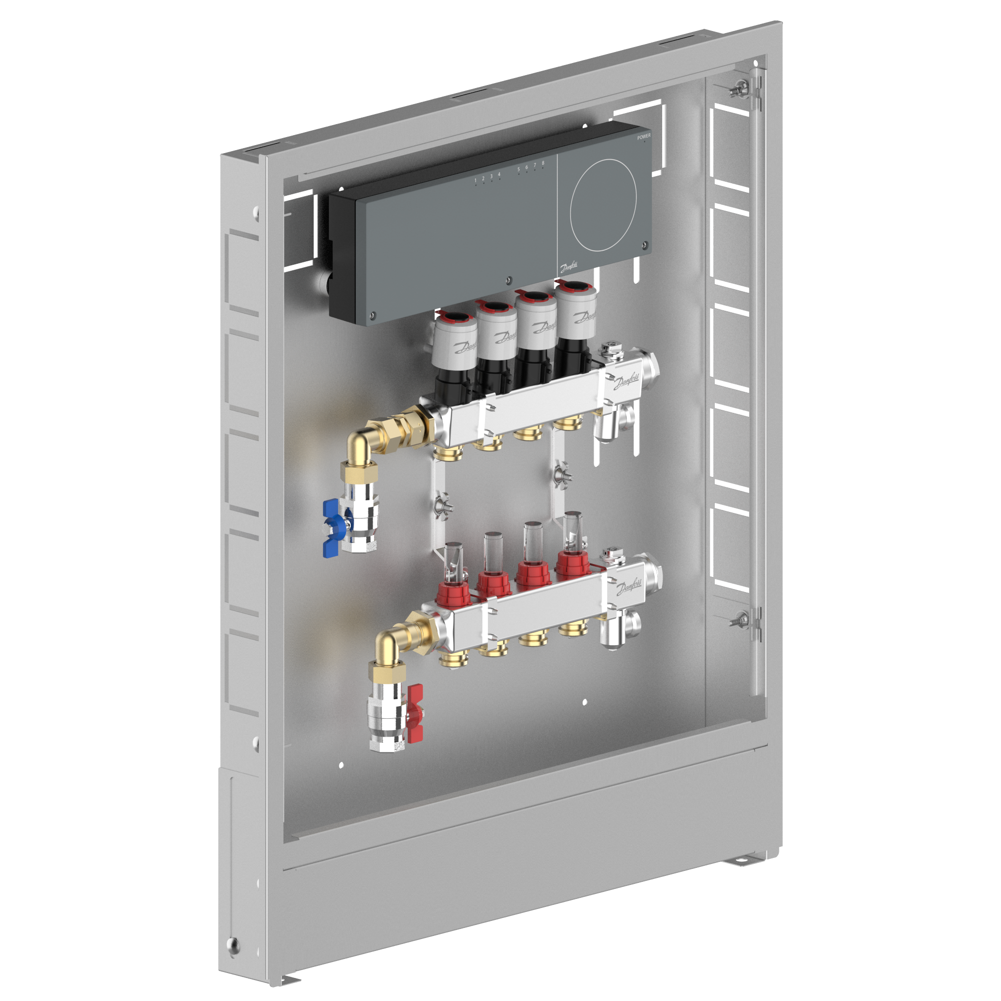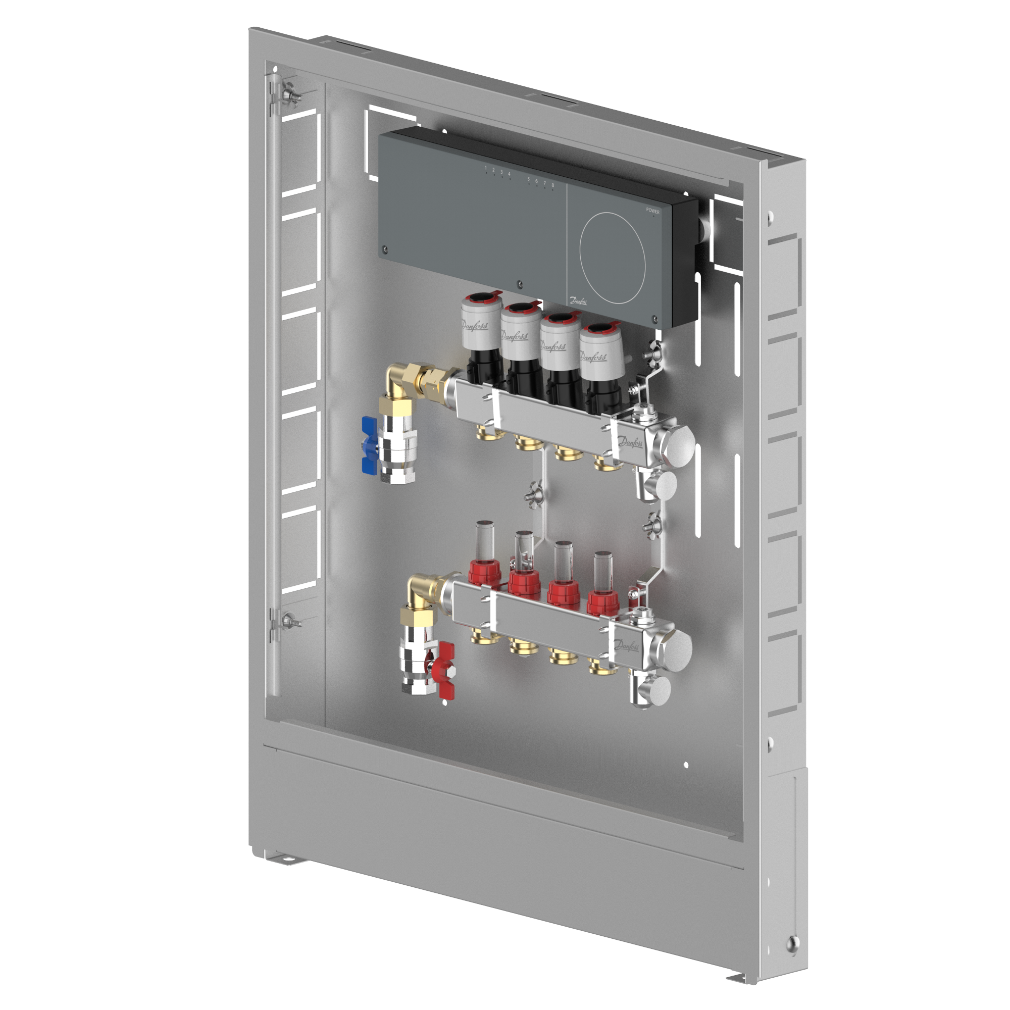 088X3714 Danfoss: Stainless steel manifold, 4 loops, steel cabinet, ICON Wiring center, left version