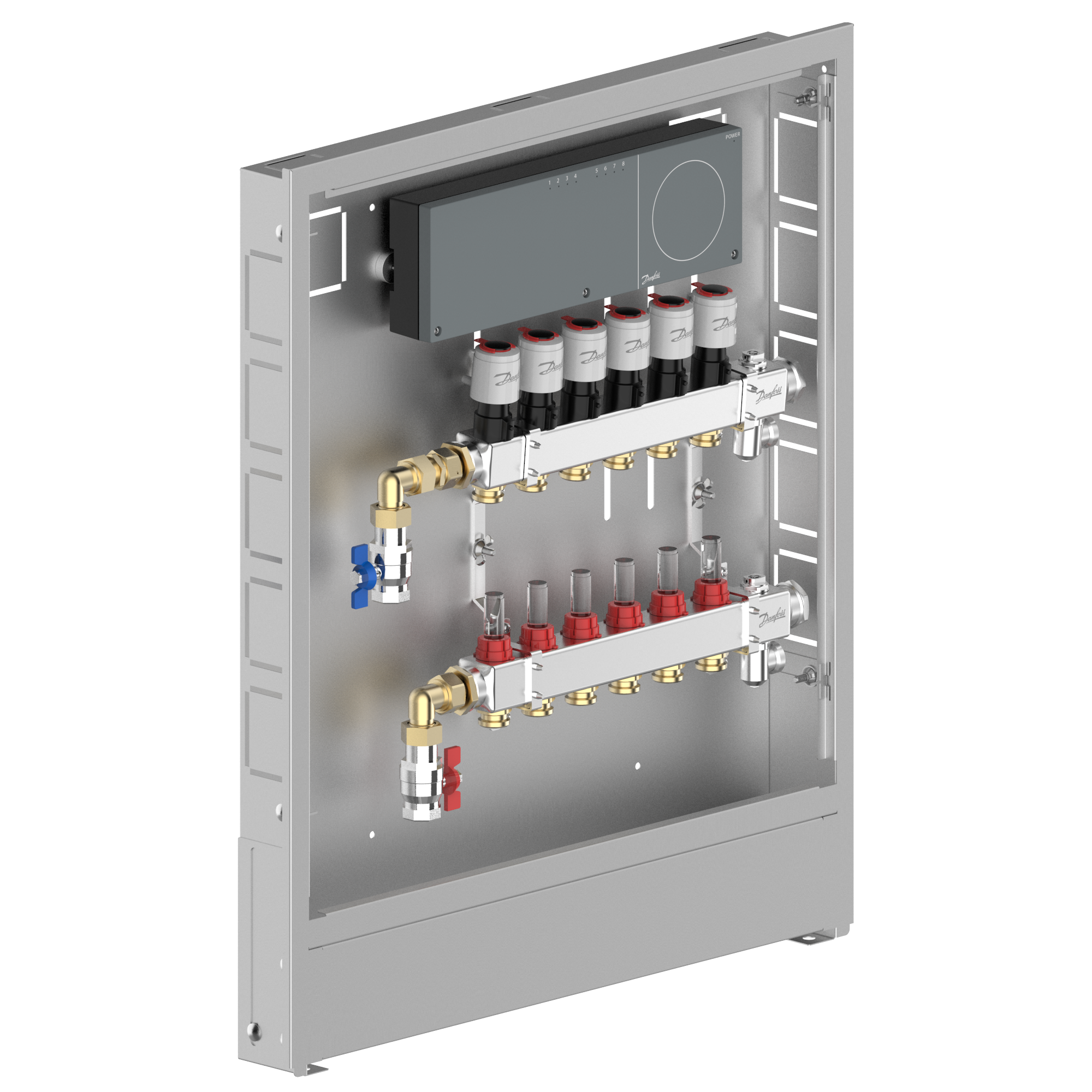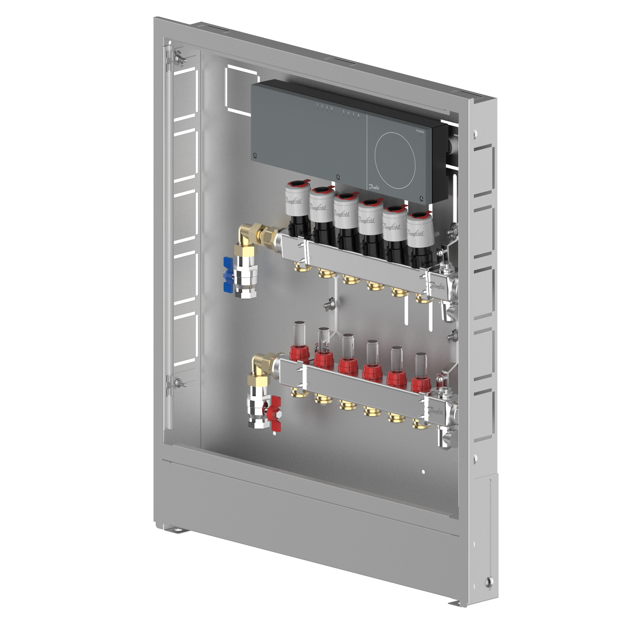 088X3716 Danfoss: Stainless steel manifold, 6 loops, steel cabinet, ICON Wiring center, left version