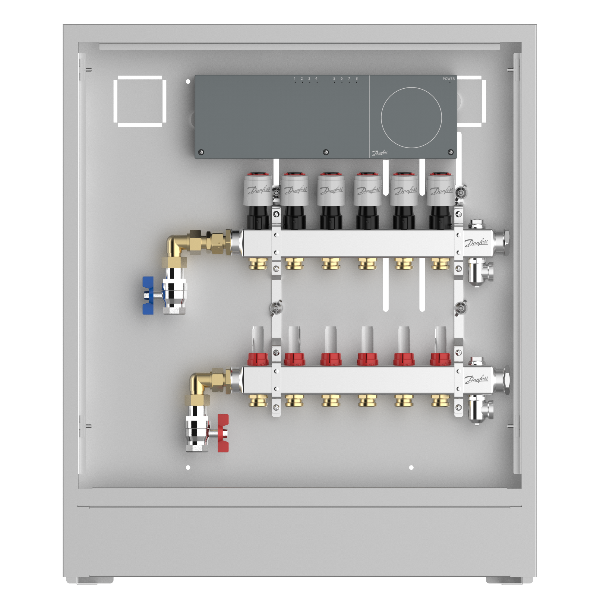 Stainless steel manifold, 6 loops, steel cabinet, ICON Wiring center, left version