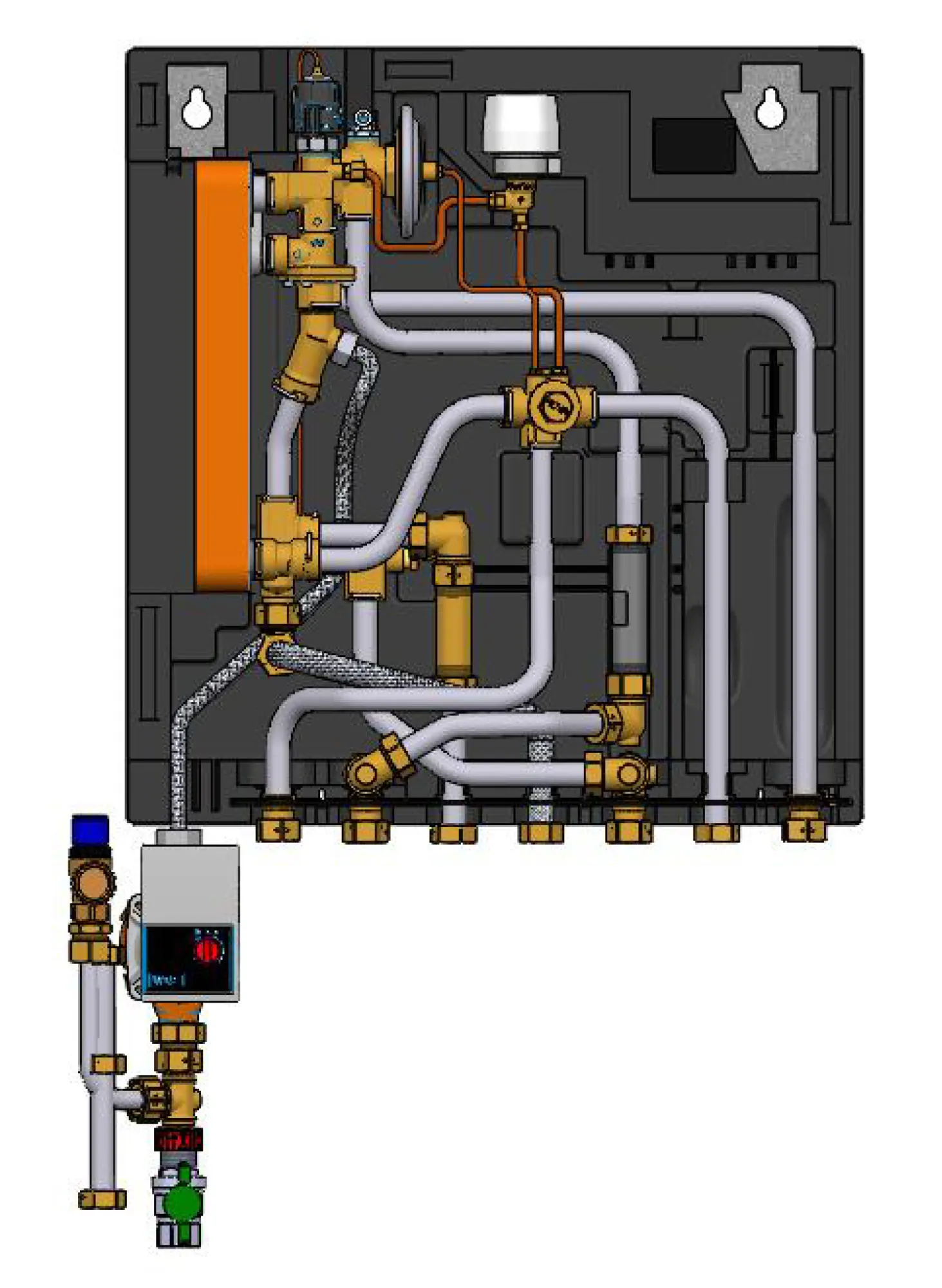 EvoFlat FSS R1, Radiator heating, DHW HEX copper type 1, Summer bypass, Without front