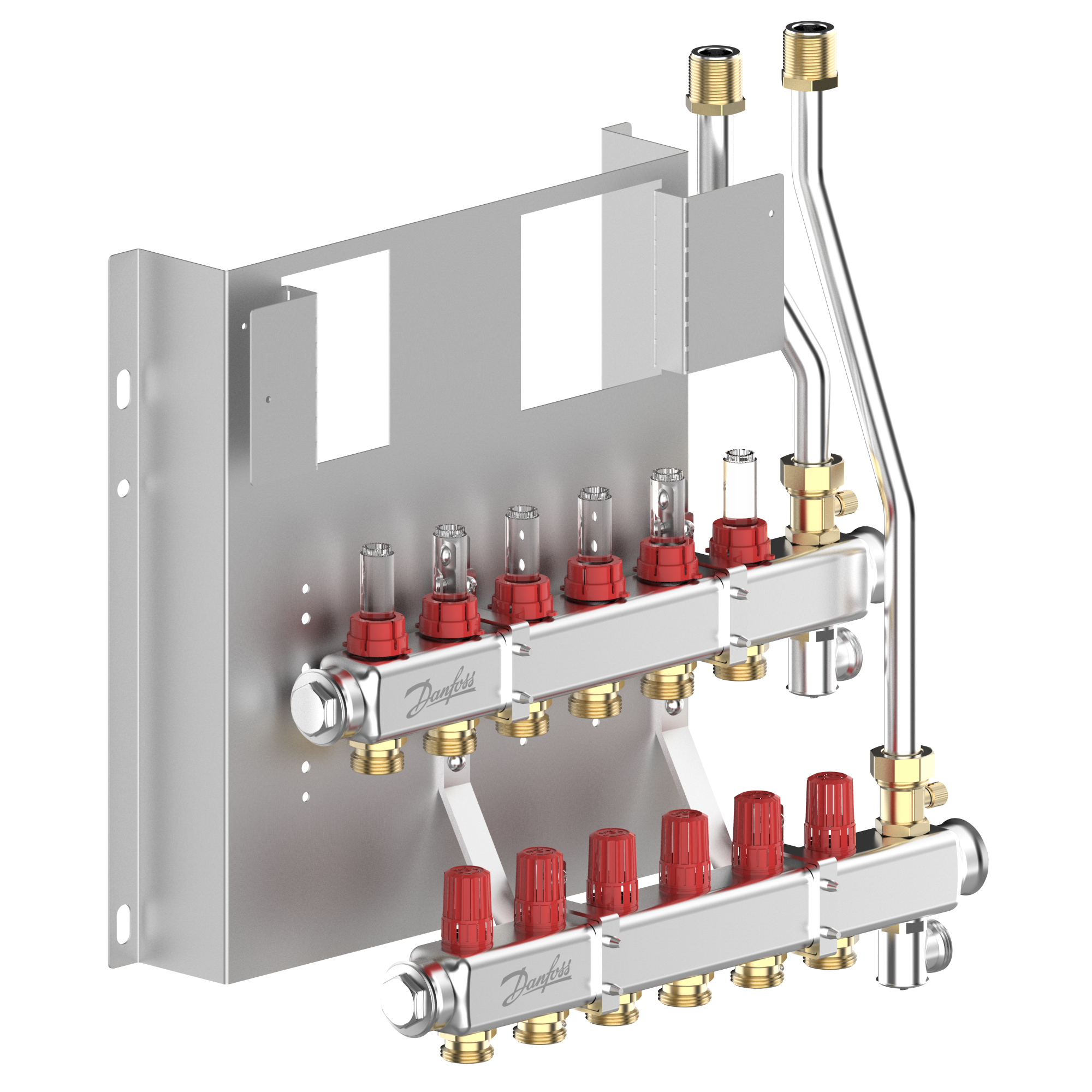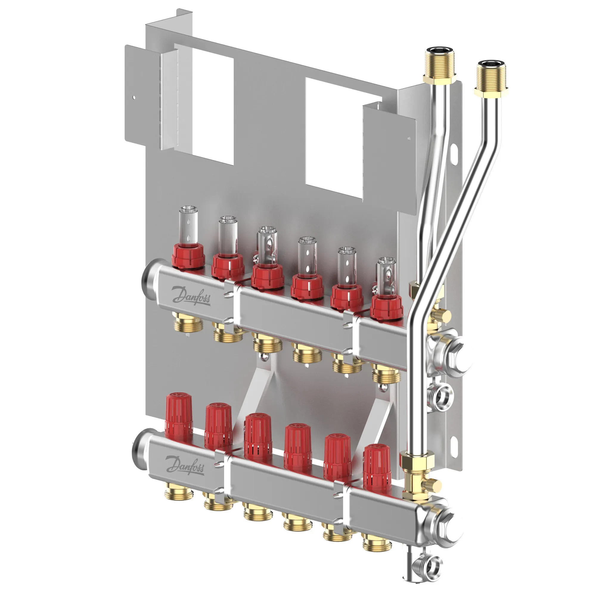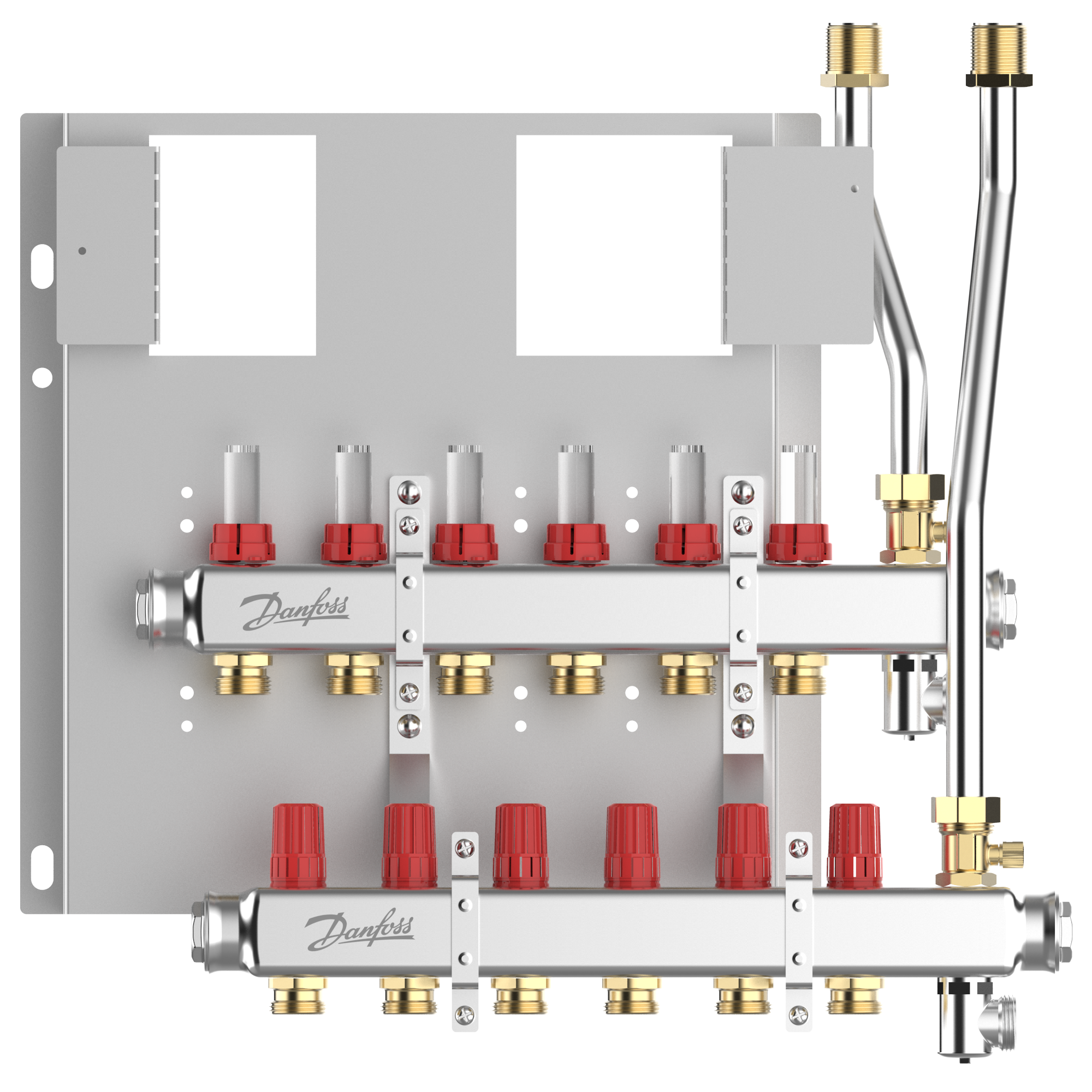 145H0906 Danfoss: Stainless steel manifold, 6 loops