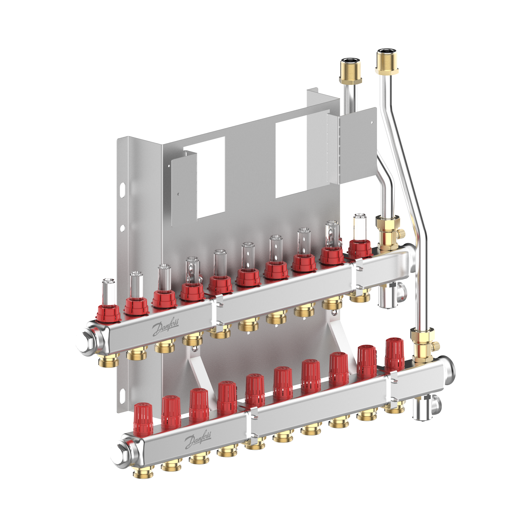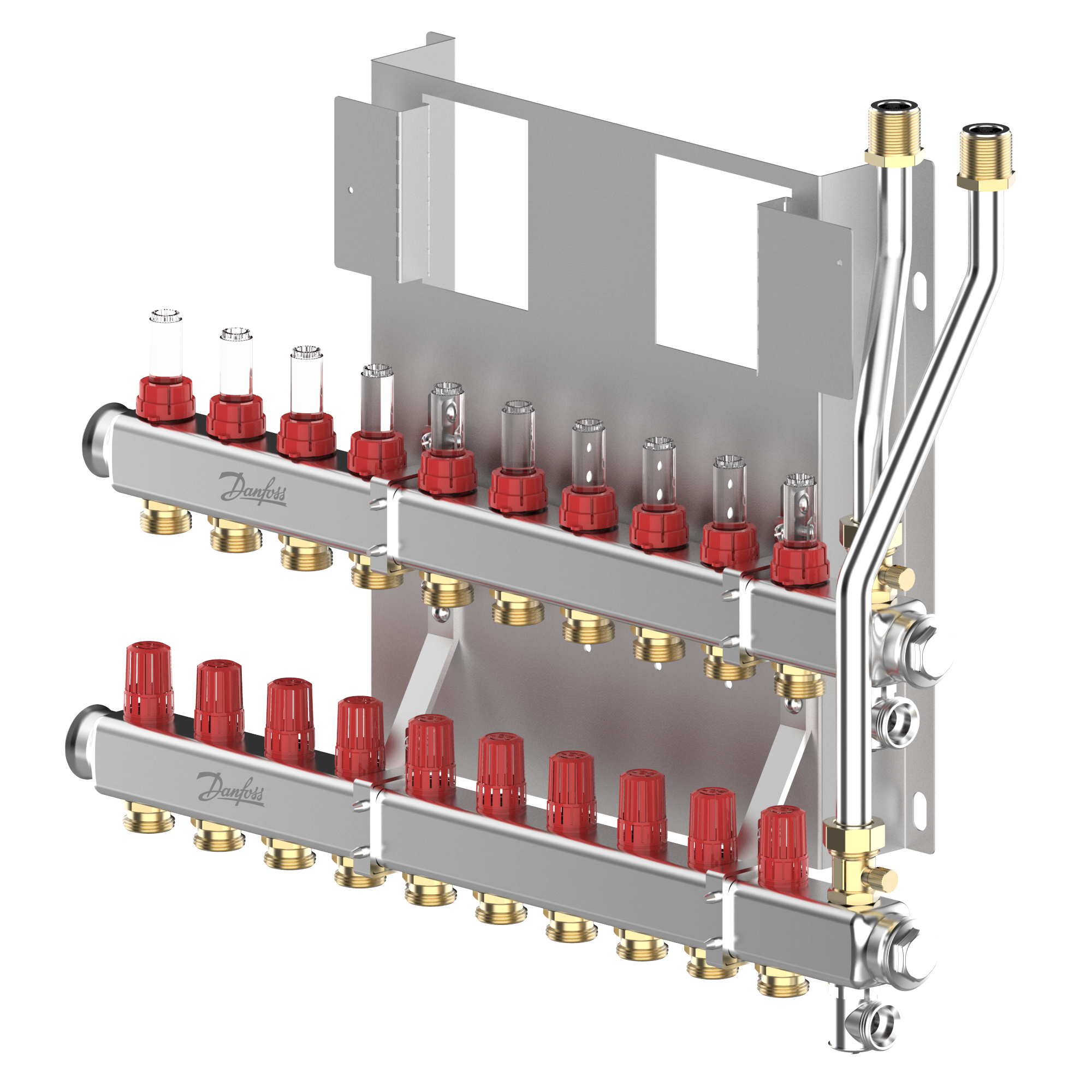 145H0910 Danfoss: Stainless steel manifold, 10 loops