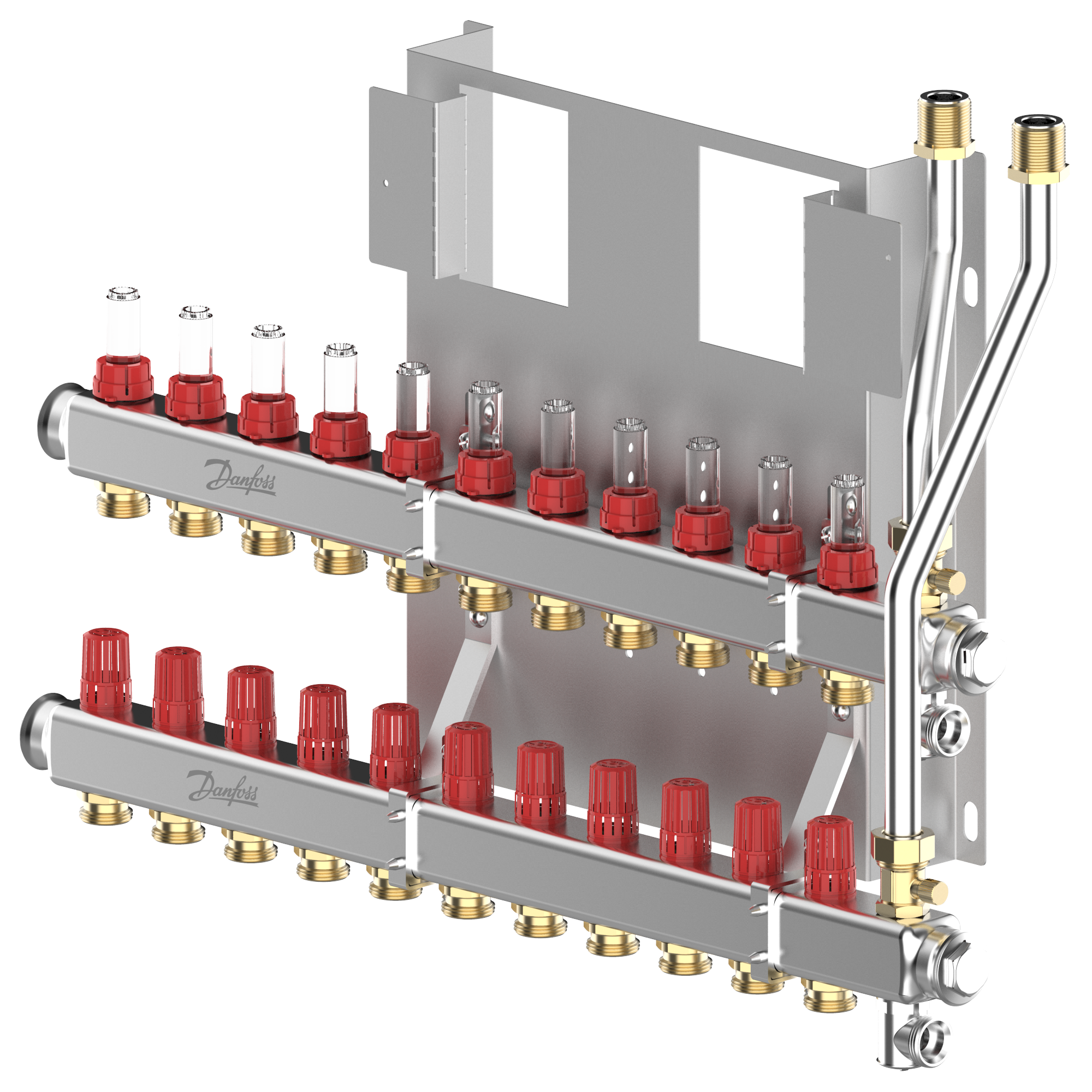 145H0911 Danfoss: Stainless steel manifold, 11 loops