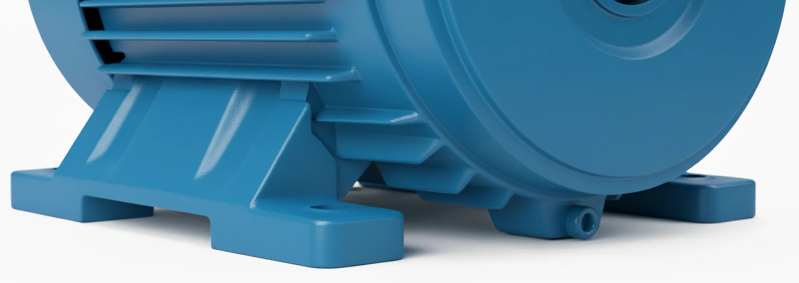 Rigid cast iron feet prevent slippage and bolt loosening in high-vibration environments like quarries and manufacturing floors.