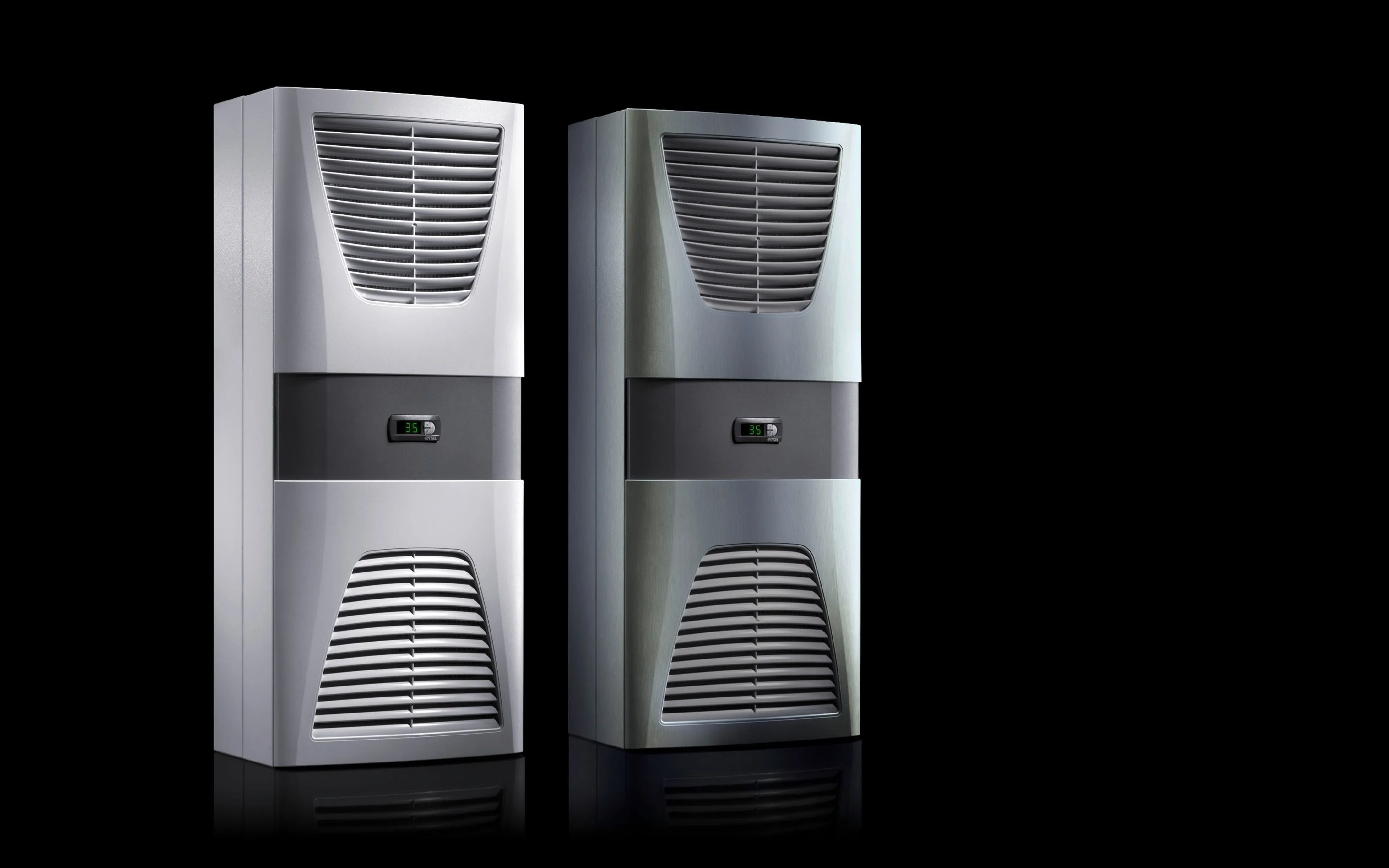 Energy-efficient Blue e wall-mounted cooling units in the output categories 300 W to 4000 W and with integral electrical condensate evaporator (from 1000 W).