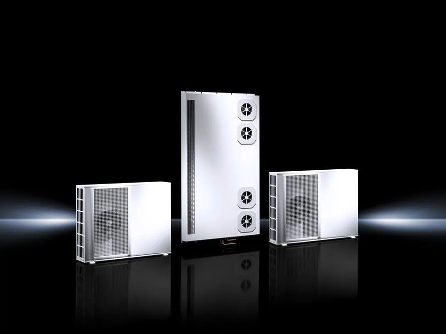 The redundant variants have two cooling circuits and controllers inside the internal unit, plus two inverter-regulated external units. The fault and operating hours changeover allows regular switching between the two external units, and ensures automatic changeover in the event of a malfunction or failure.