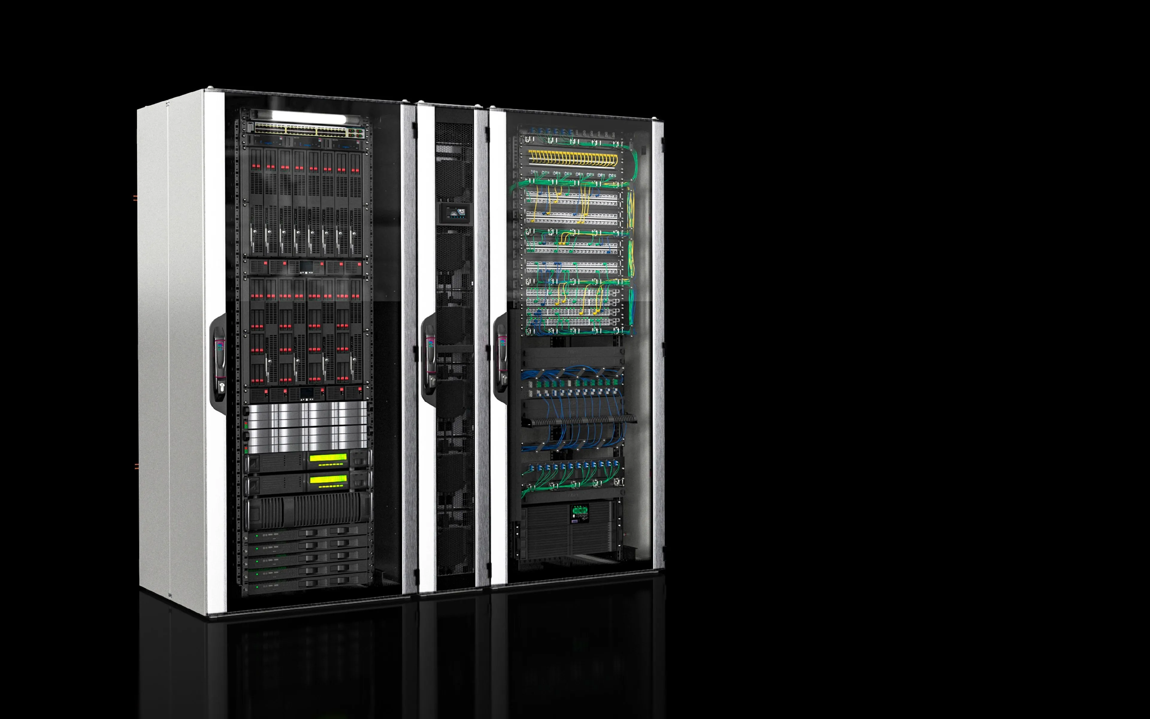 Fully integrated fire detection and extinguisher system | Automatic server enclosure door opening | Direct connection of an additional 16 CMC III sensors possible | Racks 2200 mm high