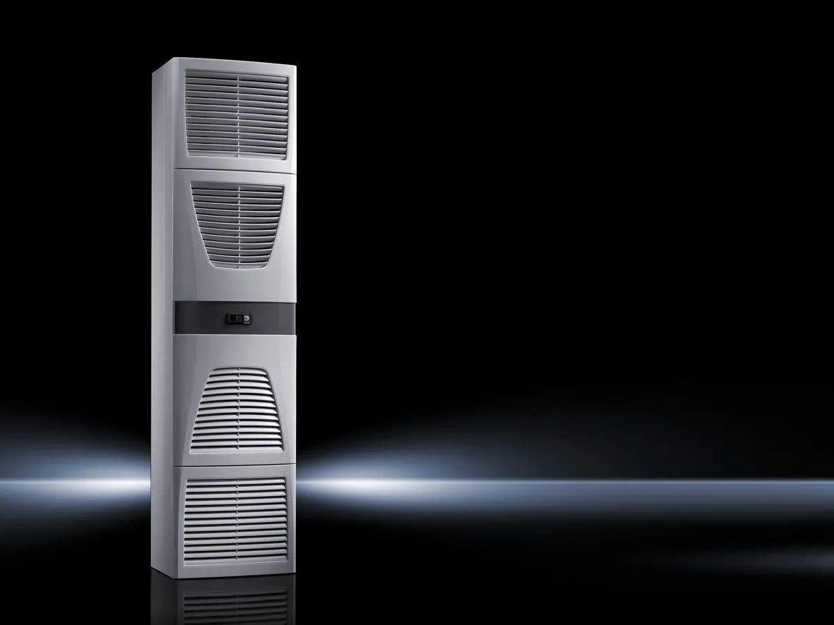 Energy-efficient Blue e wall-mounted cooling units in the output categories 300 W to 4000 W and with integral electrical condensate evaporator (from 1000 W).