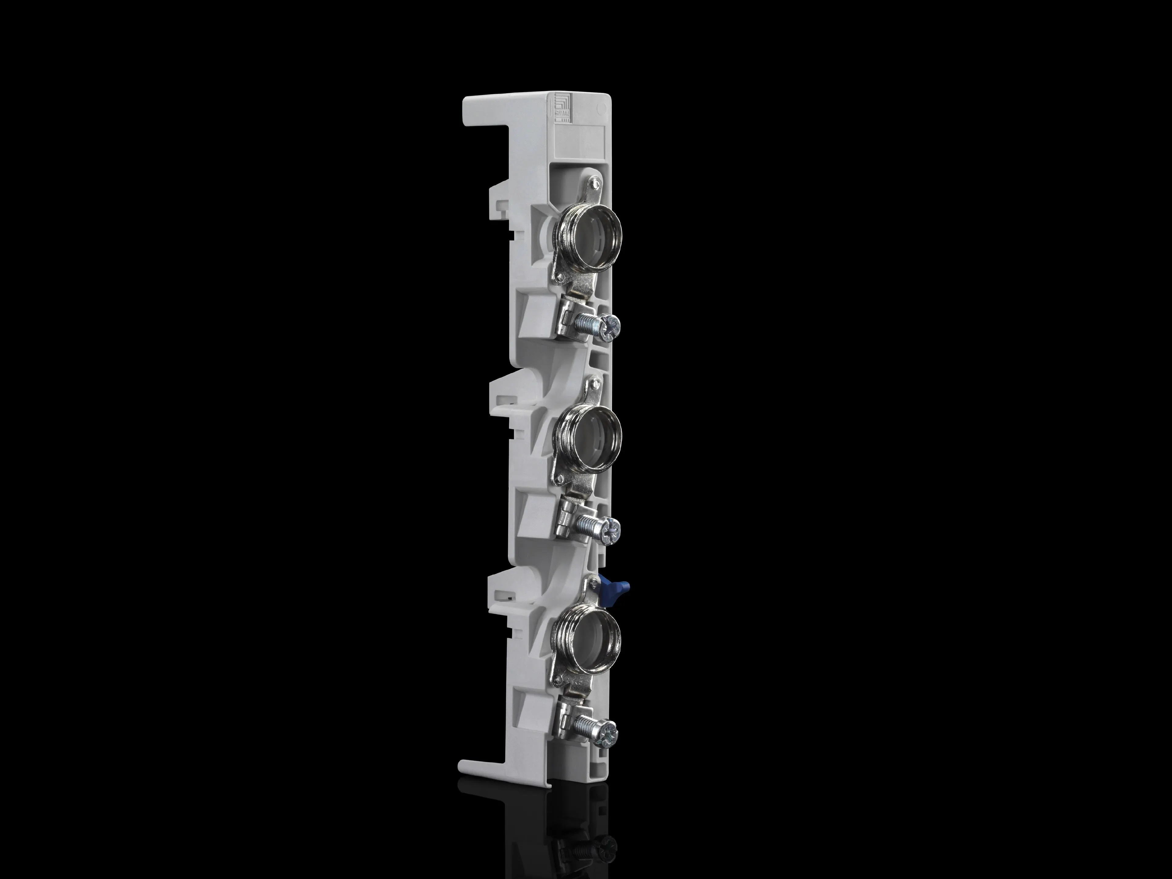 3418010 Rittal: SV Bus-mounting fuse base, D02-E18, 63 A, 400 V, 3-pole, round conductor connection 1,5-25 mm², adaptor sleeve