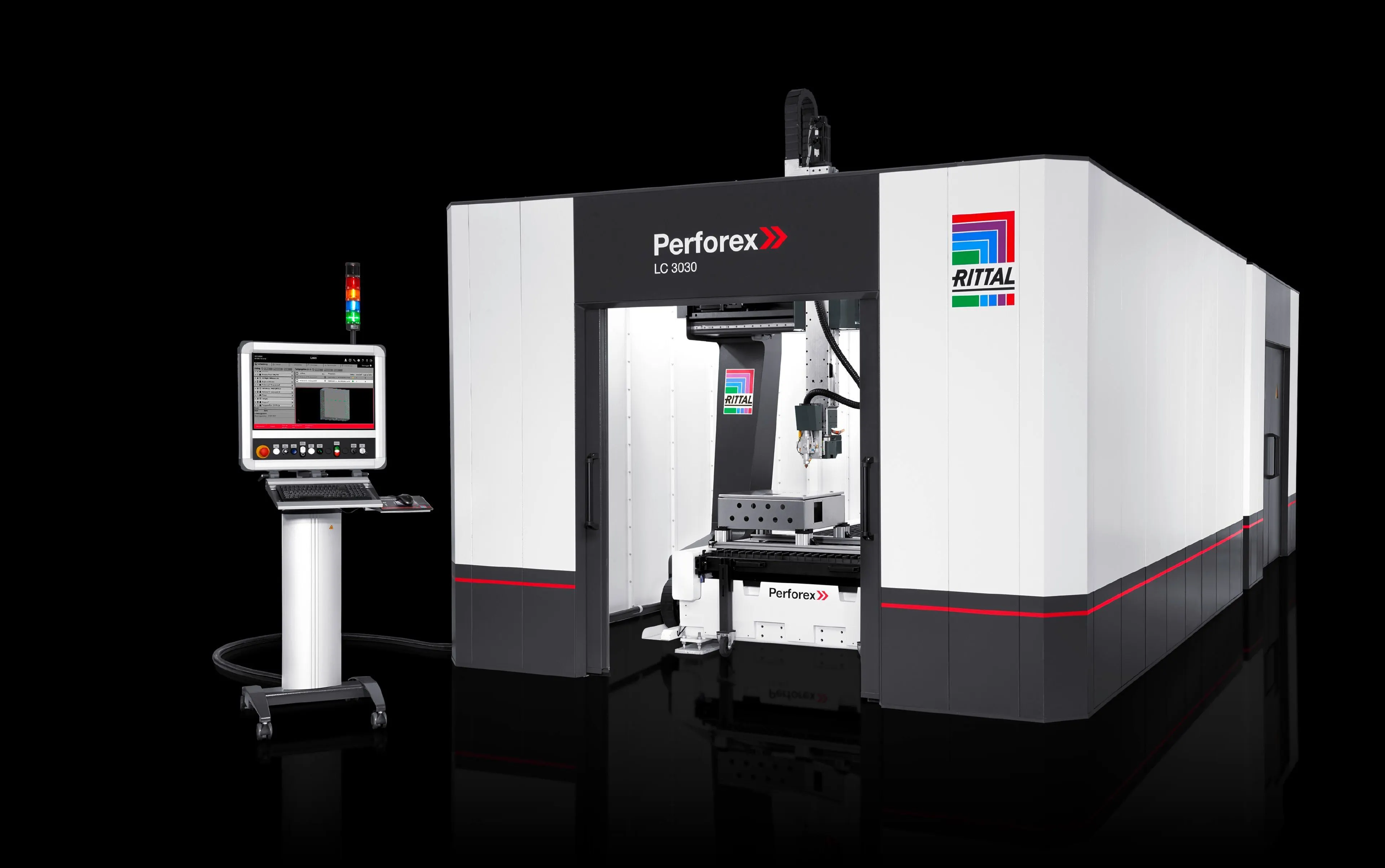 4050331 Rittal: AS Perforex LC power units left, Overall dimension incl. maintenance unit, (WxHxD): 5900 x 3800 x 8300 mm