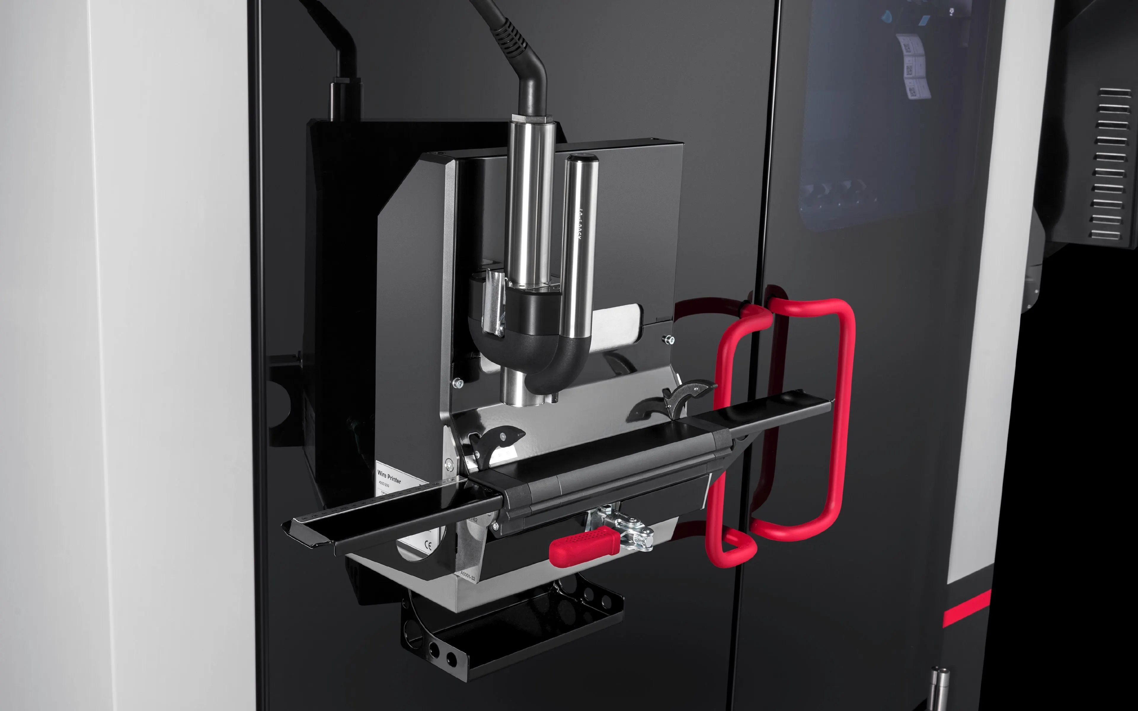 Wire printer add-on module | Infeed to wire printer | Machine housing | Modified glass door on the front | Software module